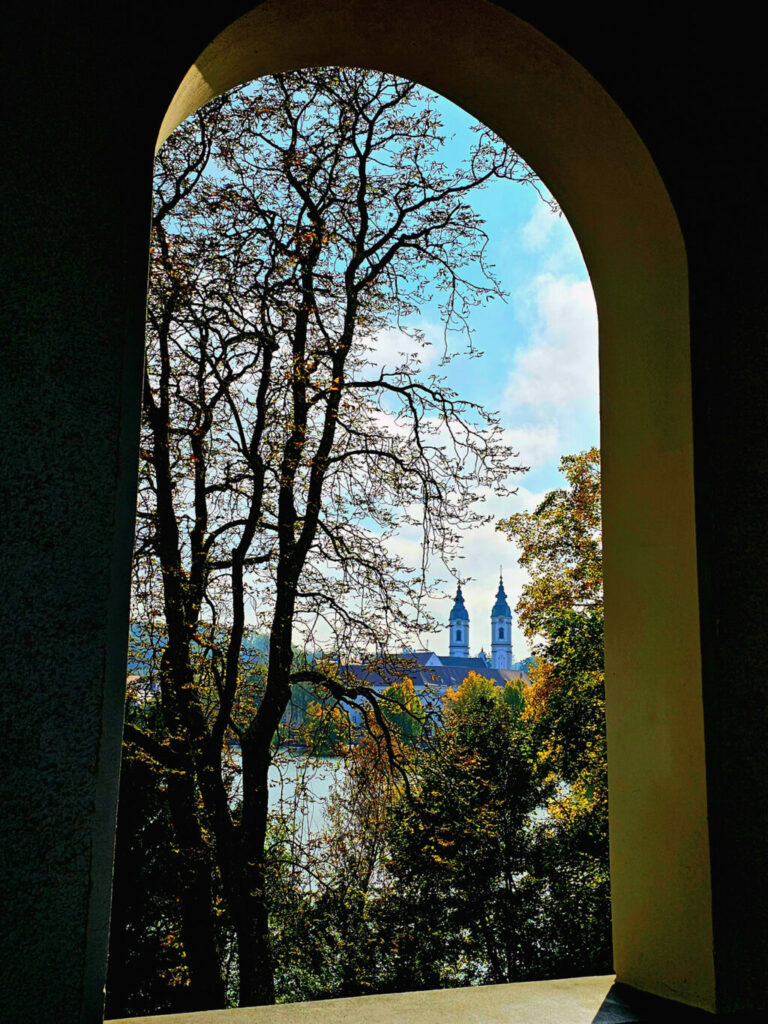 Bad Waldsee – Beim Umrunden des Stadtsees Bad Waldsee am Samstag, 11. Oktober, bot sich Eva Zitzl vom Nordufer aus das nachstehend wiedergegeben Fotomotiv. Beim Blick durch eine Arkade sah sie die Pfarrkirche St. Peter mit ihren Doppeltümen, eingerahmt von herbstlich buntem Laub.