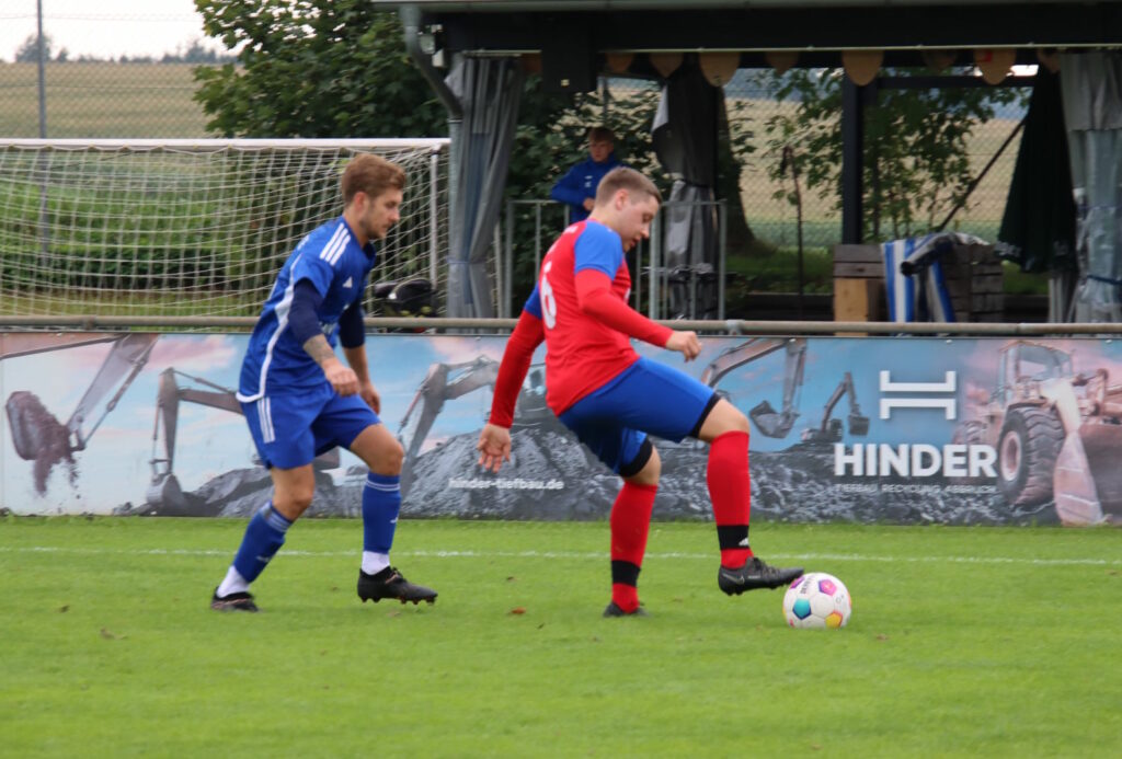 Die Heimpartie gegen die SGM Blitzenreute/Mochenwangen II begann für den Gastgeber nach Maß, als der agile Noah Geiselhart in der vierten Minuten beim Torabschluss im Strafraum gefoult wurde. Den fälligen Elfmeter verwandelte Kevin Kraus sicher zum 1:0. Irgendwie tat die Führung dem Reutener Spiel jedoch gar nicht gut und die Gäste kamen immer besser in die Partie. Zu allem übel musste auch noch Noah Geiselhart verletzungsbedingt früh vom Feld, bei den Gästen hatte es kurz zuvor Cenk Cakmak erwischt. Die Gäste zeigten sich auch weiterhin vom frühen Rückstand völlig unbeeindruckt und der SVR hatte eine brenzlige Situation im Strafraum zu überstehen. Fünf Minuten vor dem Halbzeitpfiff hatte der eingewechselte Benjamin Porteous die dicke Chance auf den Ausgleichstreffer, verpasste aber das Reutener Tor knapp. Auf der anderen Seite kam endlich auch Reute wieder zu Möglichkeiten. Kevin Kraus scheiterte mit einem Freistoß am Keeper, Maximilian Heß setzte einen Kopfball knapp über den Querbalken. Unmittelbar vor dem Halbzeitpfiff kam Justin Matt im Gästestrafraum ins Straucheln und der Unparteiische zeigte zum zweiten Mal auf den Punkt. Kevin Kraus ließ sich das nicht entgehen und verwandelte mit seinem 8.Saisontreffer zum 2:0-Halbzeitstand.