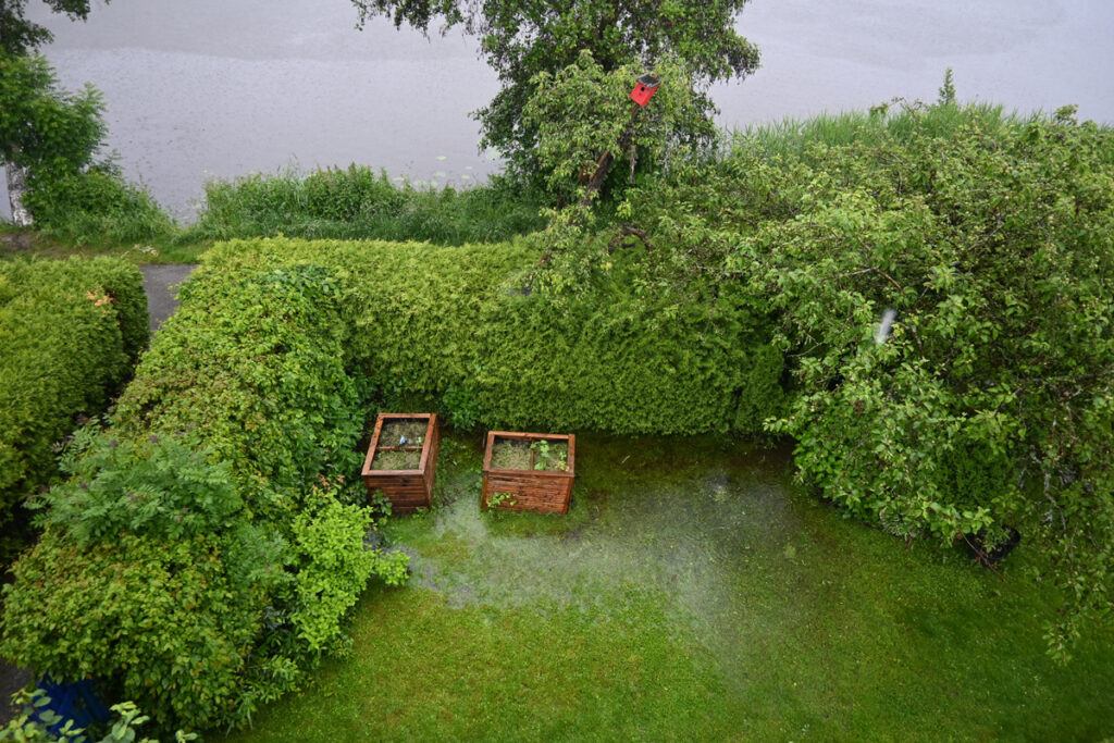 Aufteerungen am Uferweg lassen das Wasser aus den Gärten nicht mehr abließen.