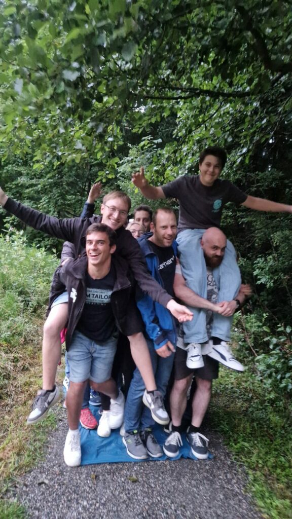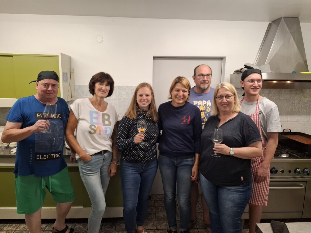 Zwar zeigte sich das Wetter wechselhaft und brachte immer wieder Regen, doch der Stimmung tat das keinen Abbruch. Am Freitagabend startete das Wochenende mit einem gemeinsamen Abendessen, gefolgt von einer spannenden Schnitzeljagd, bei der alle viel Spaß hatten. Bis spät in die Nacht wurde in geselliger Runde gefeiert. Der Samstag bot abwechslungsreiche Aktivitäten: Eine kleine Gruppe machte sich trotz Nässe auf den Weg – entweder in Richtung Imberg oder zu den nahegelegenen Buchenegger Wasserfällen. Andere ließen es sich in der Therme gutgehen, während ein weiterer Teil der Gruppe einen entspannten Stadtbummel durch Oberstaufen unternahm. Am Mittag kamen alle wieder bei Kaffee und Kuchen in der Hütte zusammen.