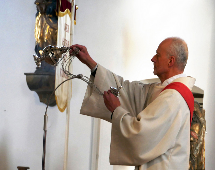 Welche Bedeutung diesem Festtag in Haisterkirch und in der ganzen Seelsorgeeinheit Bad Waldsee beigemessen wird, erkannte man schon daran, dass sich acht Geistliche um den Altar versammelt hatten. Auch 14 Ministrantinnen und Ministranten dienten im Altarraum. Sie hatten extra einen schulfreien Tag genehmigt bekommen.