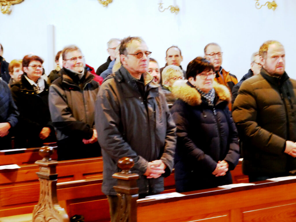 Die Wetterverhältnisse mit viel Sonnenschein bei Temperaturen um den Gefrierpunkt waren ideal. Die Pfarrkirche war bei Gottesdienstbeginn um 9.00 Uhr voll belegt. Pfarrer Stefan Werner und der Gewählte Vorsitzende des KGR Haisterkirch Rolf Heber begrüßten die Gottesdienstbesucher. Sie freuten sich darüber, dass auch etliche Verantwortliche aus der Politik, so Minister a. D. Rudi Köberle und der Bundestagsabgeordnete Axel Müller, beide CDU, und aus der Kommunalpolitik Sonja Wild in Vertretung des Oberbürgermeisters, die Ortsvorsteher Achim Strobel (Reute-Gaisbeuren), Matthias Covic (Haisterkirch) sowie die frühere Ortsvorsteherin Rosa Eisele und die früheren Ortsvorsteher Franz Spehn (Mittelurbach) und Franz Bendel (Gaisbeuren) zum Sebastiansfest hierhergekommen waren. Etliche weitere Ehrengäste, so auch Gemeinderäte und Ortschaftsräte, gehörten dazu.