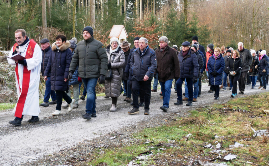 Etliche Gruppen, kleine und große, mit Wallfahrerinnen und Wallfahrern aus dem ganzen Nahbereich, begaben sich auf die Wege, die aus vier Himmelsrichtungen zur Kapelle führen, um dort zu beten und um den Beistand des Heiligen bei Gott zu erbitten.