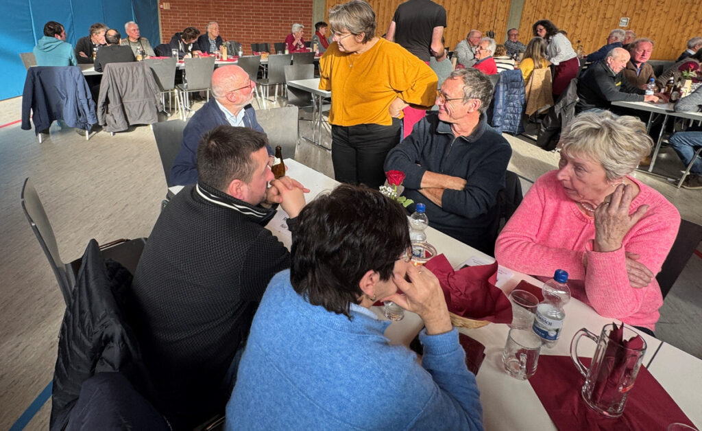 In der Gemeindehalle in Haisterkirch waren zur Mittagszeit alle Plätze belegt. Unser Bild zeigt den Ehrentisch mit Pfarrer Werner von rechts.