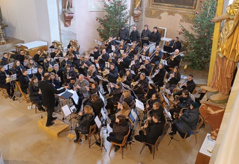 Vor dem Tagesgebet sangen die Gottesdienstbesucher, musikalisch begleitet vom Blasorchester, „Zu Betlehem geboren“. Nach der Lesung von den Geschehnissen um den Tod des Tagesheiligen Stephanus wurde „Ich steh an deiner Krippe hier“ in einer berührenden holländischen Instrumentalfassung zu Gehör gebracht. Nach der Predigt folgte nochmals Gemeindegesang mit dem Weihnachtslied „Adeste fidelis“. Mit einer Variation von „Stille Nacht“ aus der Feder von Franz Gruber wurde bei der Gabenbereitung eine friedvolle und andächtige Stimmung im Kirchenraum wahrgenommen. Zarte Töne entlockten die Blechbläser des Musikvereins beim „Andachtsjodler“ zum Agnus Dei, das bei jeder Wiederholung mächtiger wurde. Mit „Der Festtag“ vom österreichischen Komponisten Sepp Tanzer wurde während der Kommunion ein wahres Meisterwerk der Blasmusik von den Musikern intoniert, das die ganze Klangvielfalt des Orchesters in der Wallfahrtskirche widerspiegelte.