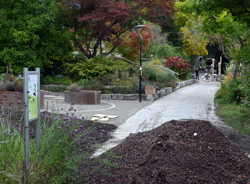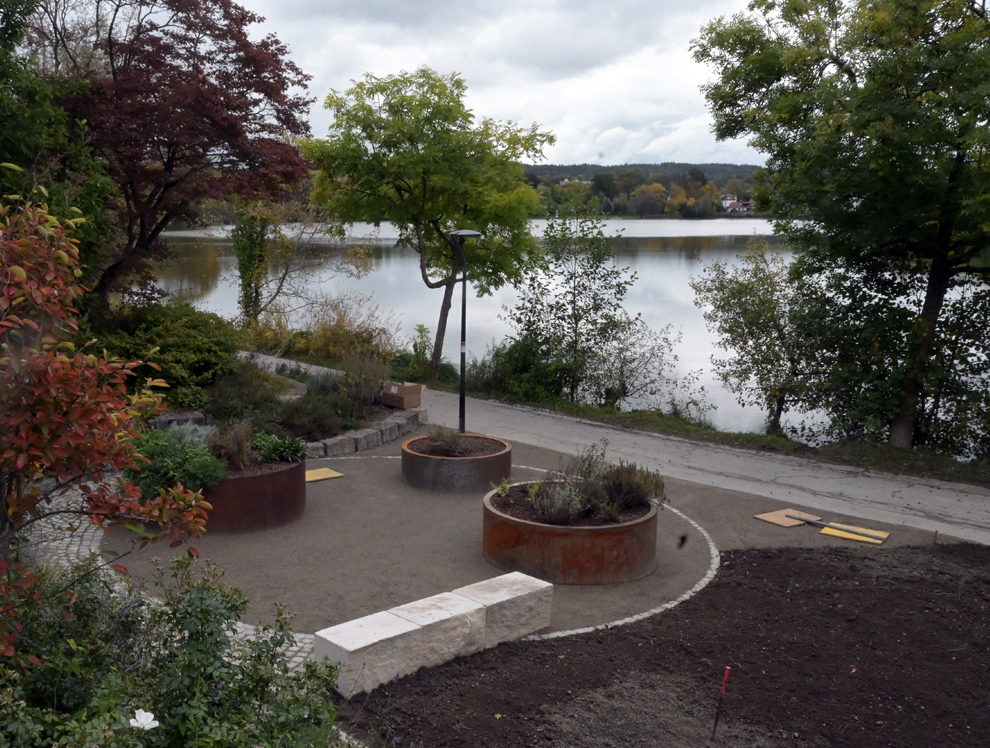 Am Uferweg werden die Böschungsabbrüche repariert. Hier schlägt die Stadt zwei Fliegen mit einer Klappe: Der Stadtsee-Aktiv-Weg wird mit neuen Attraktionen aufgehübscht und gleichzeitig wird das Ufer befestigt, so dass man wieder gefahrlos vorbeispazieren kann. Bad Waldseer und ihre Gäste sehen schon lange, dass sich was tut und warten auf die Eröffnung der neuen Attraktionen.