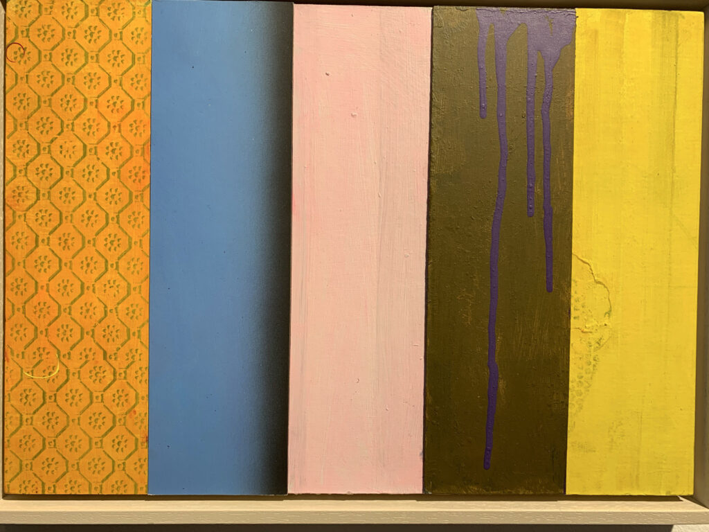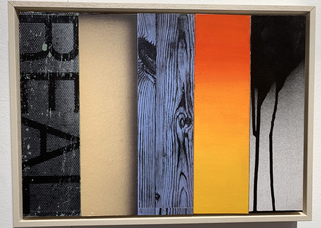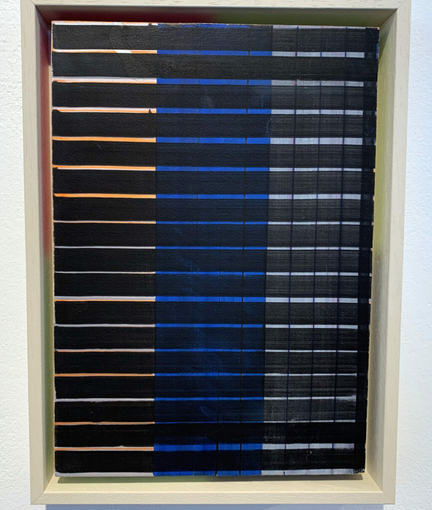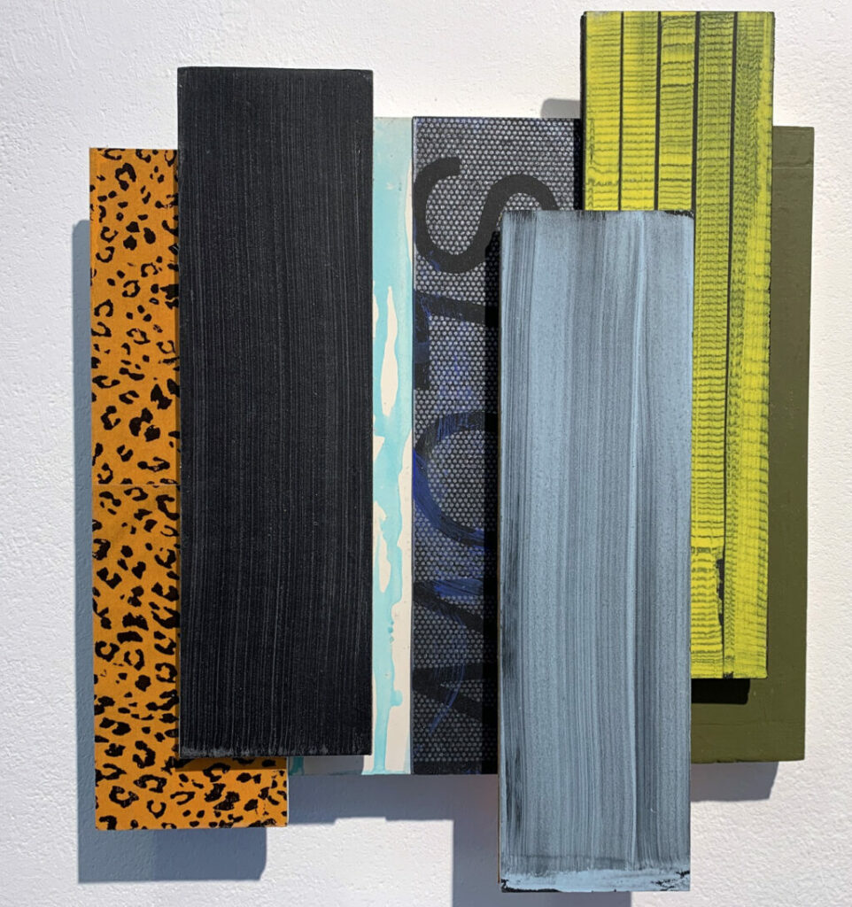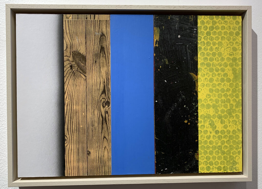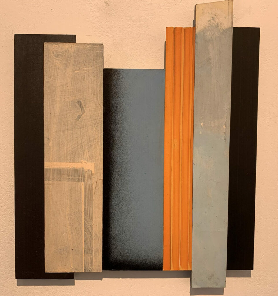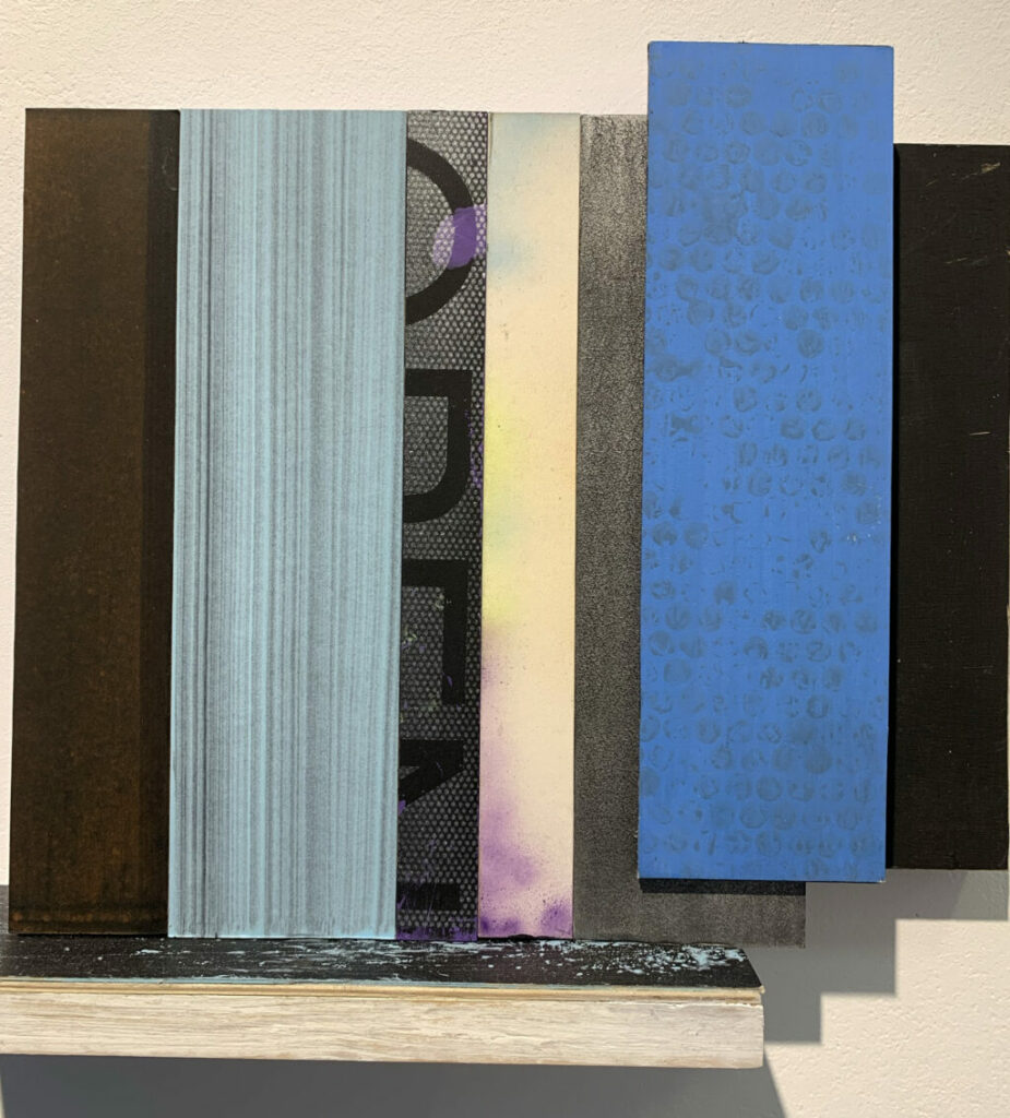 Christofori freute sich sehr, Jost Münsters Ausstellung in der „kleinen aber feinen Galerie mit ein paar warmen Worten“ eröffnen zu dürfen, zumal sich die beiden seit mehr als 25 Jahren kennen. Der in Ulm gebürtige Jost Münster studierte Malerei an der Kunstakademie in Stuttgart. Nach erfolgreichem Abschluss ging Münster an das renommierte Londoner Goldsmiths College, wo er ein Masterstudium absolvierte. Nach der Entscheidung, sich in London dauerhaft niederzulassen, machte er dort „sein Ding auf internationalem Parkett“, so der Laudator. Münster sei Maler durch und durch. Seine Arbeiten reichen von Postkartengröße bis zur großformatiger Leinwand, von Collagen über Reliefs ins Plastische. Die Übergänge von Fläche und Raum erscheinen fließend. Klassisch malerisch sind beispielsweise seine großformatigen „INTERVALS“ mit horizontalen Streifen unterschiedlicher Farbwerte. Was darin die „Jalousien“ wohl verbergen, weiß man nicht und sollte man erahnen.