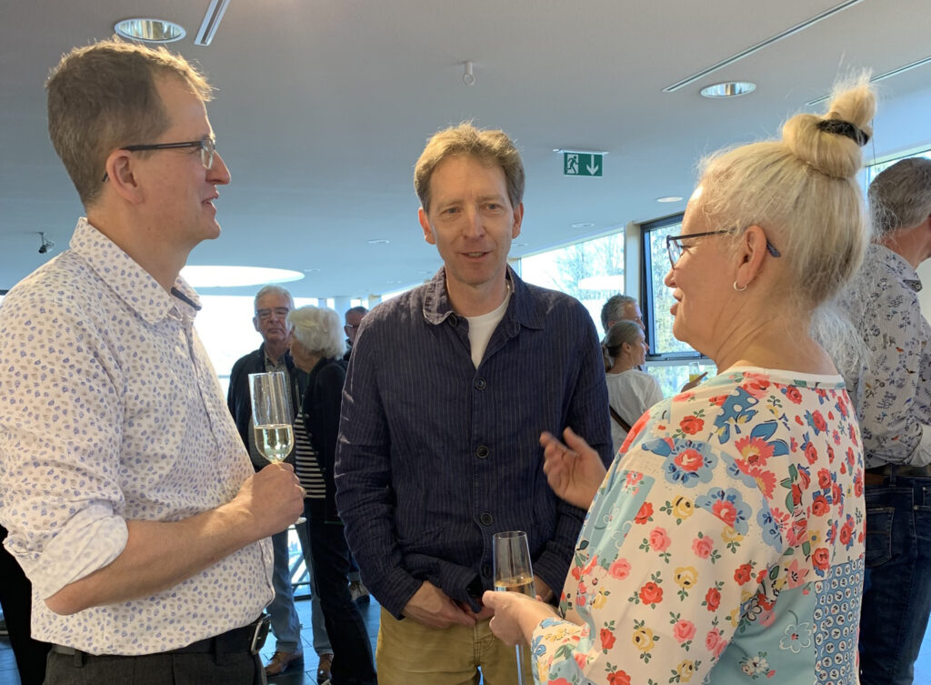 Ob Münsters Werke nur „abstrakt“ genannt werden können, ist fraglich. Denn fernab der Realität sind sie offenbar nicht, schöpft er doch aus beobachteten Farben, Formen und Strukturen im urbanen Umfeld Londons. Christofori erläuterte das Annähern an Münsters Arbeiten schließlich mit Erkenntnissen Umberto Ecos und dessen Buch „Opera aperta“. Demnach sollen Betrachter in Kunstwerke einbezogen werden beziehungsweise einen interpretierenden Dialog bieten. Jost Münster habe sicher nichts dagegen, wenn die Vernissagegäste ihn in den interpretierenden Dialog einbeziehen wollen, so Christoforis schließlicher Wunsch zum Umgang mit Arbeiten des Künstlers.