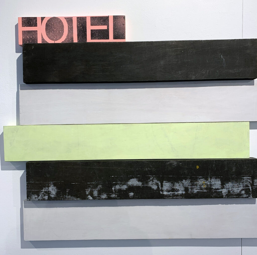 In seinen objekthaften Arbeiten wie beispielsweise im Objekt „HOTEL“ (Bild) empfinde man sich vor der Wand stehend, im Objekt „DURCHGANG“ etwa durch die Wand gehend. Bei Münster sei das Sichtbare eine Verbindung zwischen realem, materiellem und gemaltem Raum und eben das lasse sehr viel Raum für das, was wir gegebenenfalls sehen wollen. Auch in der Werkgruppe „4ever“ empfinde der Betrachter Ähnliches. Hier aber seien Malerisches, Furnier und Fotografie engstens verbunden, zu sehen in den Arbeiten „FAKE“ oder „REAL“.