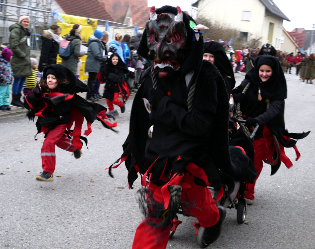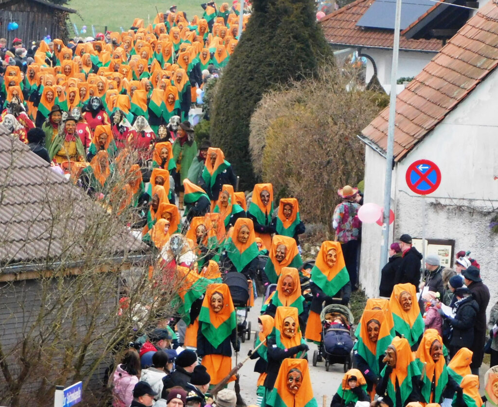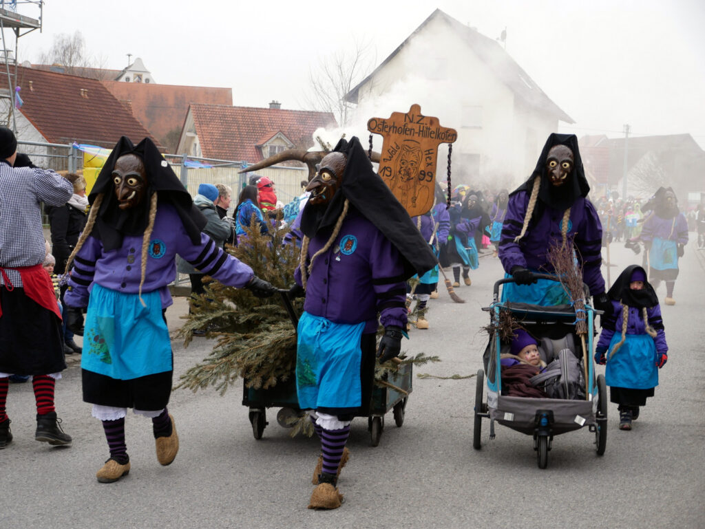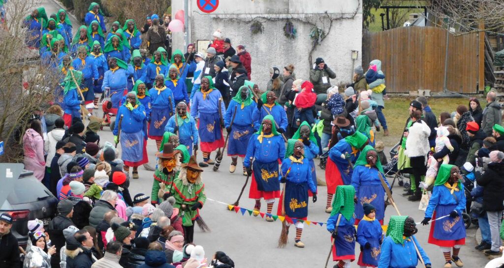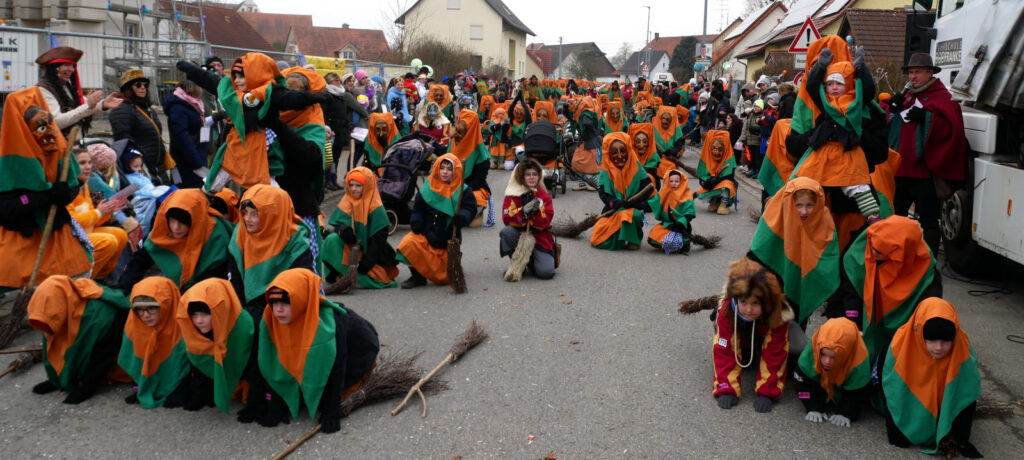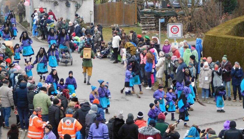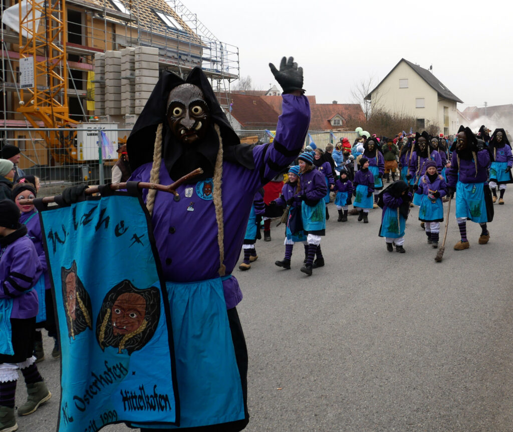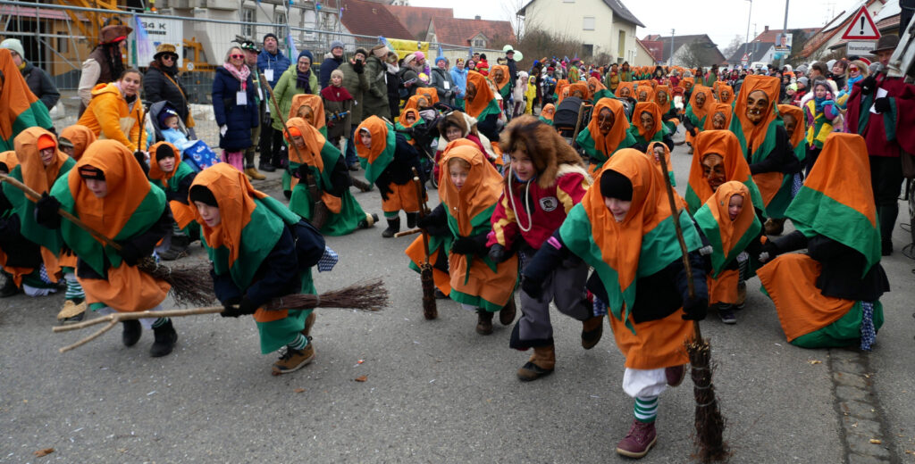 Haisterkirch – Alles passte am vergangenen Samstag (18.1.) beim Jubiläumsumzug zum 25-jährigen Bestehen der Narrenzunft Waldhex Osterhofen-Hittelkofen, nämlich Vorbereitung, Durchführung, Nachbereitung, Wetter, Zuschauerzuspruch, Unterstützung durch DRK, Polizei, viele Vereine und Gruppierungen vom Ort. Die Häuser am Umzugsweg waren wunderschön geschmückt. Auf der Ehrentribüne in der Hittelkofer Straße verfolgten die Repräsentanten der Stadt mit Oberbürgermeister Matthias Henne an der Spitze, der Ortschaft mit Ortsvorsteher Matthias Covic, der Kirche mit Pfarrer Stefan Werner, des VAN mit Vorstandsmitgliedern und der heimischen Zunft mit Sarah Botzenhardt und Florian Eisele das närrische Treiben.