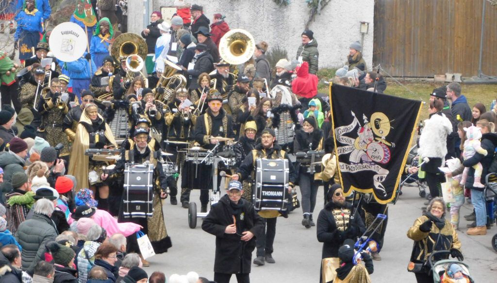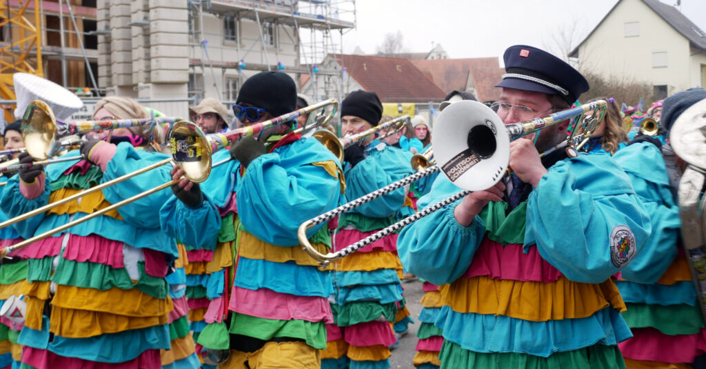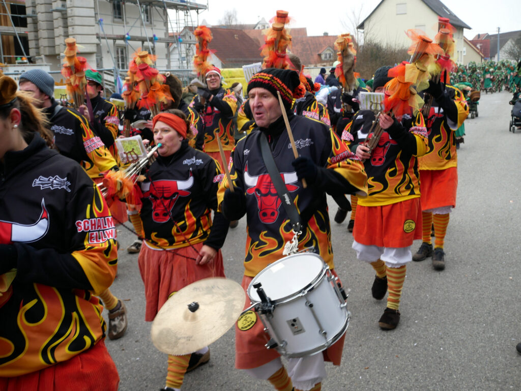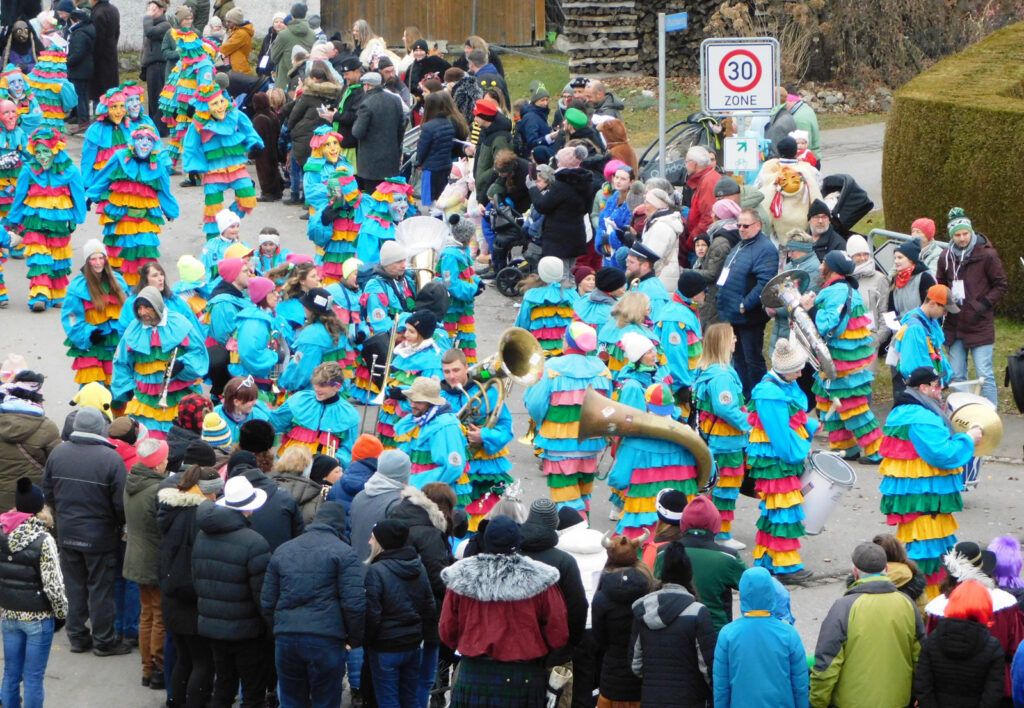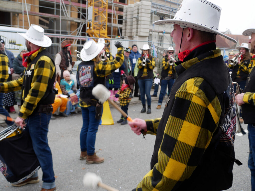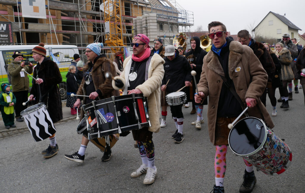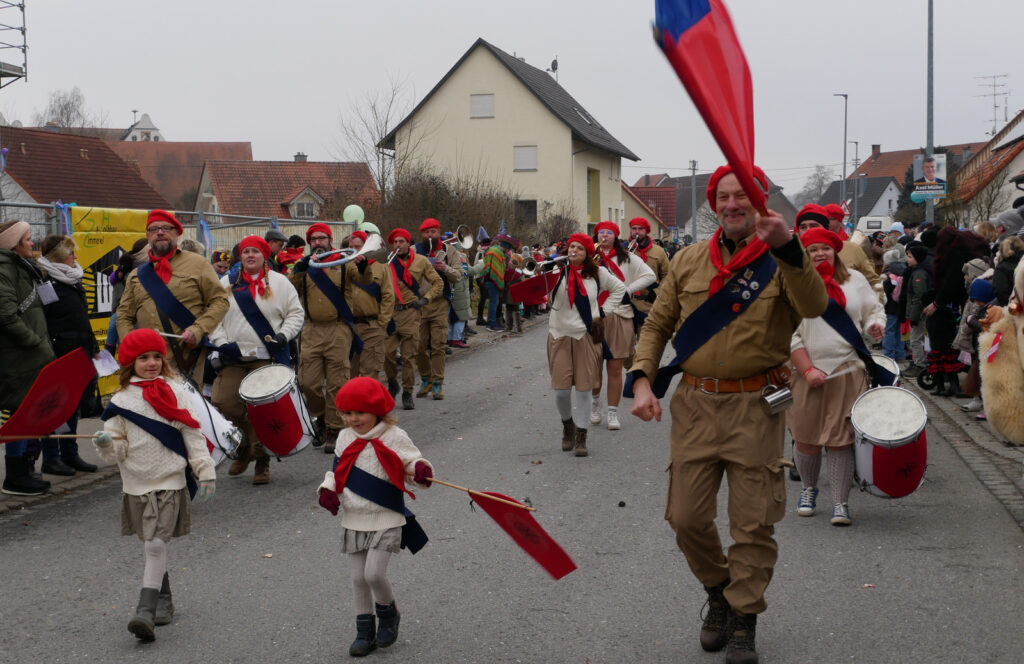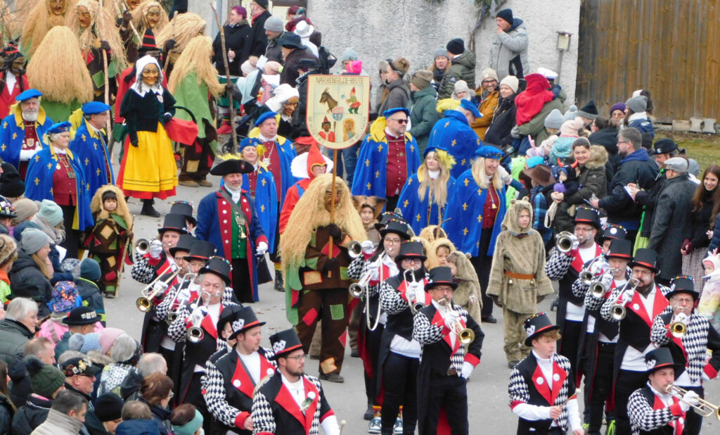 Mit schmissigen, stimmungsvollen Musikbeiträgen animierten zum Mitklatschen der Musikverein Haisterkirch (Bild), die Gugga-Gassa-Fetz-Band aus Bad Waldsee, die Lumpenkapelle Urbachl, D´Hoigamer Schtroßa Hup´r, der Fanfarenzug Reute, die Durlesbach-Schalmeien Reute, die Schalmeien Ellwangen, der Fanfarenzug Berengar Bergatreute, der Fanfarenzug „Graf Humbrecht“ aus Eberhardzell und die Rambassler Unterwaldhausen. Angeführt wurde der Umzug von der Haisterkircher Musikkapelle, den kleinen Narren aus dem Haisterkircher Kindergarten und der Grundschule mit Erzieherinnen, Erziehern und Eltern, alle zusammen bunt närrisch gekleidet, sowie durch Mitspringende der gastgebenden Narrenzunft Waldhex Osterhofen-Hittelkofen, die sich dann zum Umzugsende nochmals eingliederten.
