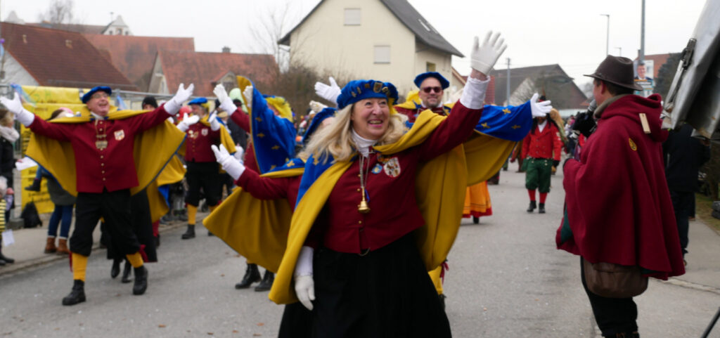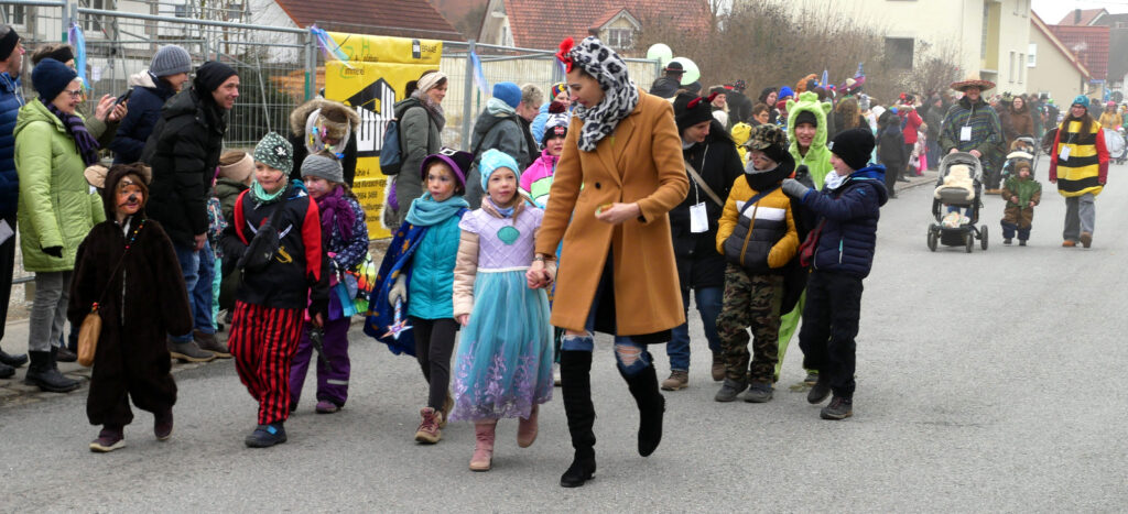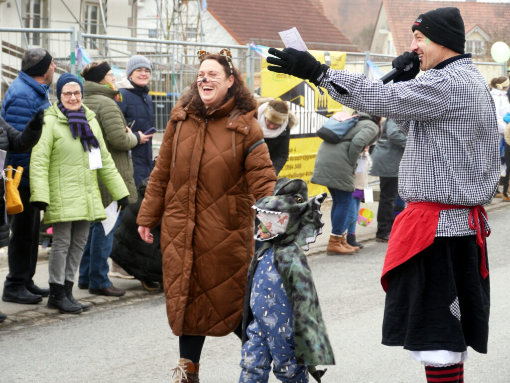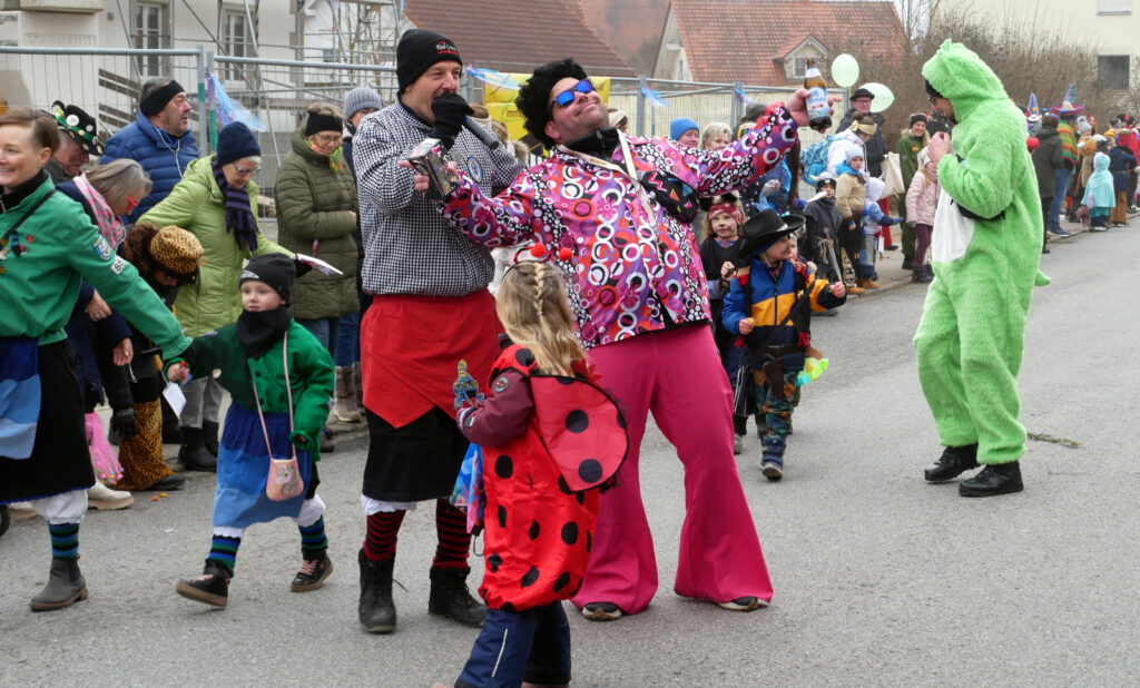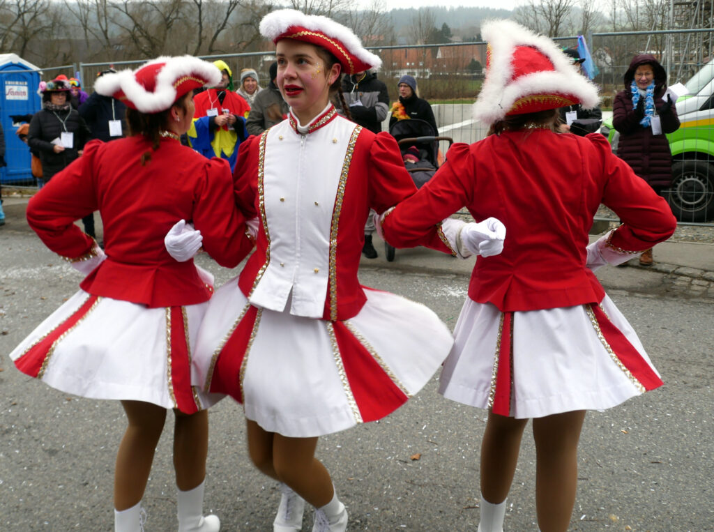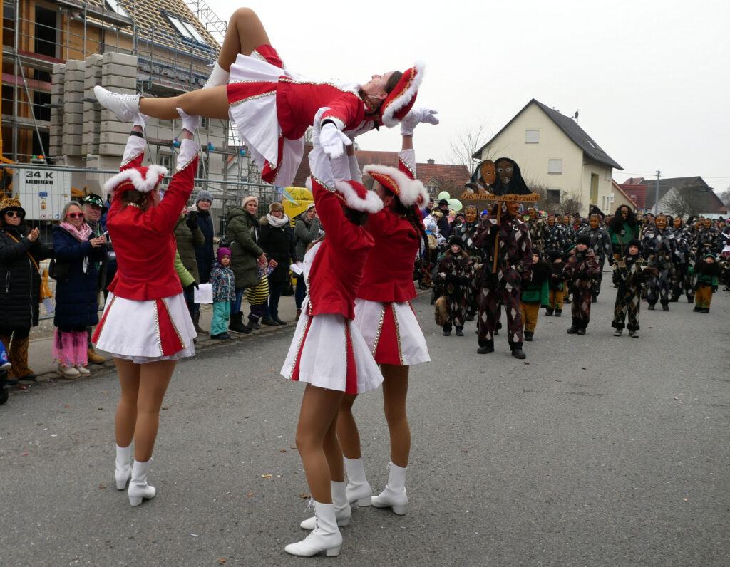Die Gardemädchen aus Unterschwarzach gefielen mit Tanzeinlagen und die Zunfträtinnen und Zunfträte winkten um die Wette. Das Publikum klatschte, hielt sich in Bewegung und antwortete prompt auf die geforderten Narrenrufe. Die süßen Spenden, die teilweise mit vollen Händen verteilt wurden, erfreuten vor allem die jungen Besucher am Straßenrand.