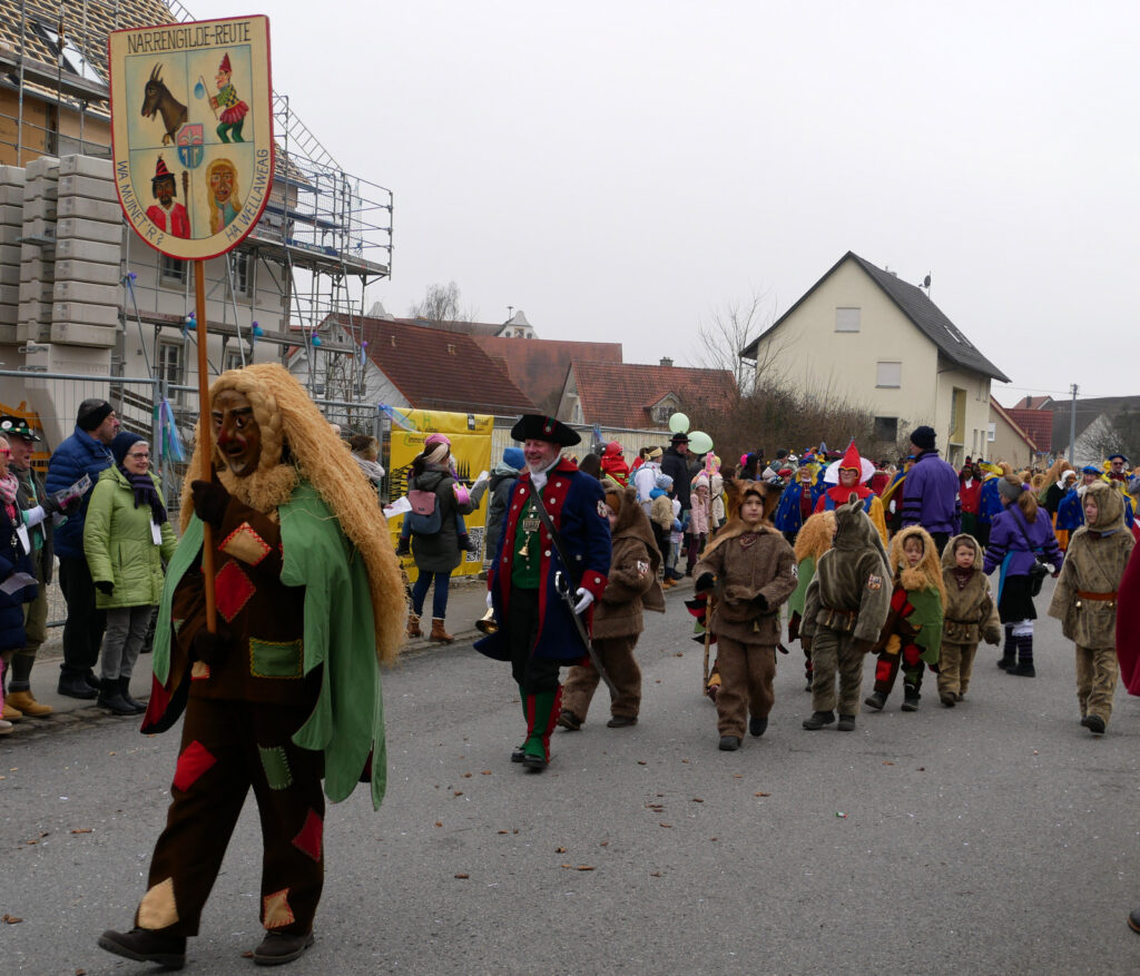 Auffallend stark vertreten waren die Zünfte aus dem engsten Nahbereich, so die NZ Chadaloh Haidgau, die Zünfte aus dem Stadtbereich Bad Waldsee mit der NG Schussentäler Reute und der NZ Bulla-Rätze (Bild; hier ein Teil der Zunft) aus Michelwinnaden. Dazu gehörten mit richtig großen Abordnungen auch die NZ Alttann, die NZ Bawaldbohle Ellwangen, die NG Schwaaz´r Butz Unterschwarzach, die NG Otterwang und die NZ Unterwaldhausen.