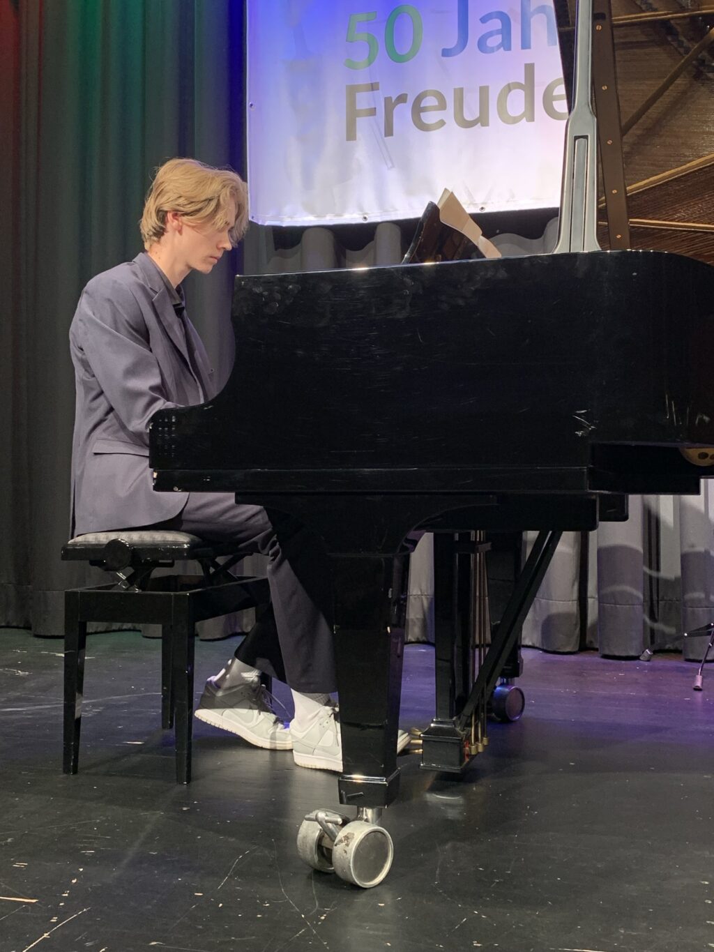 Einen herausragenden und reifen Beitrag lieferte Jungpianist Luca Merk von Becker-Schramms Klavierklasse mit „Prelude in cis-moll’ von Sergei Rachmaninoff. Äußerst schwierige Passagen oder Läufe beherrschte Luca fast mühelos!