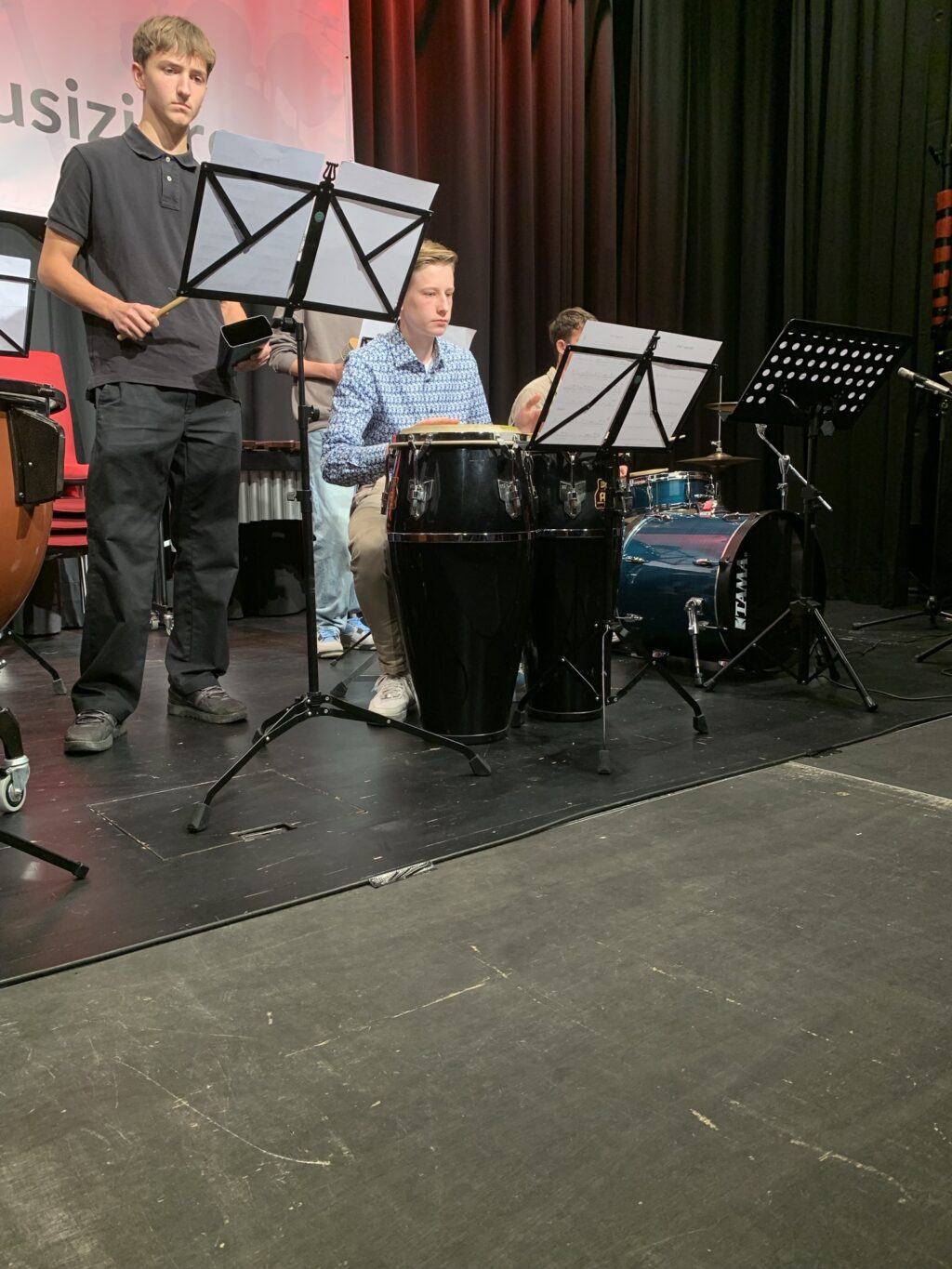 Den Schluss des Konzerts gestaltete Ralle Fricker mit „The Funky Timp’s“ von J.J. Cortijo. Die Percussionisten Jonas Frickel, Tim Schaz, Hannes Schlayer, Marc Schiller, Pascal Rebmann und Lukas Maucher zauberten mitreißende Rhythmen, auch unter Einsatz ihrer Stimmen auf die Bühne, wahrlich ein gelungener Schlusspunkt des Jubiläumsabends der Jugendmusikschule Bad Waldsee!