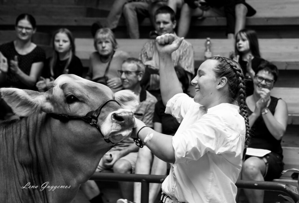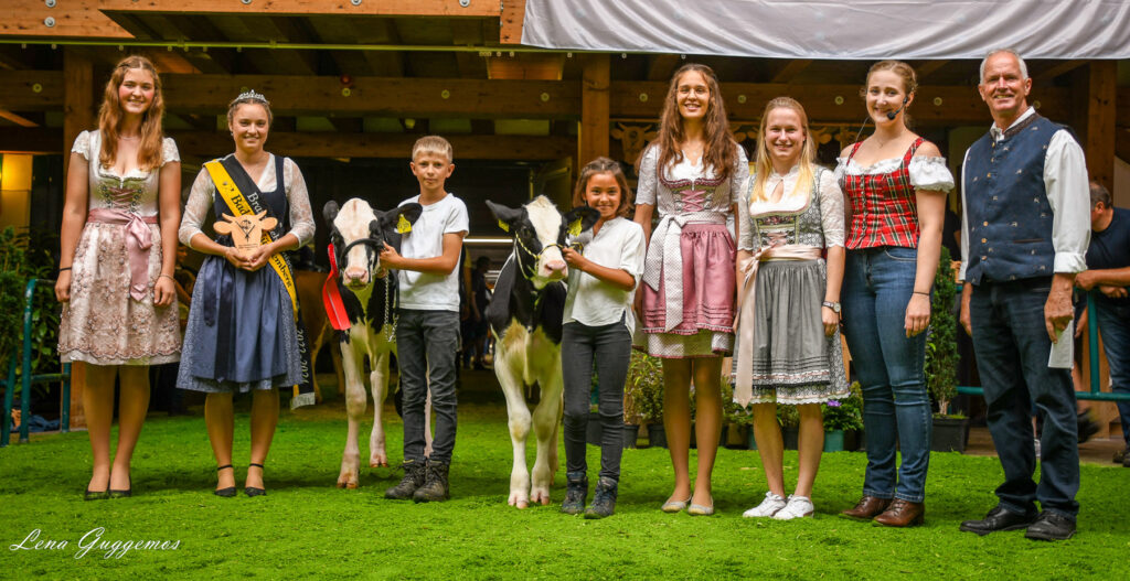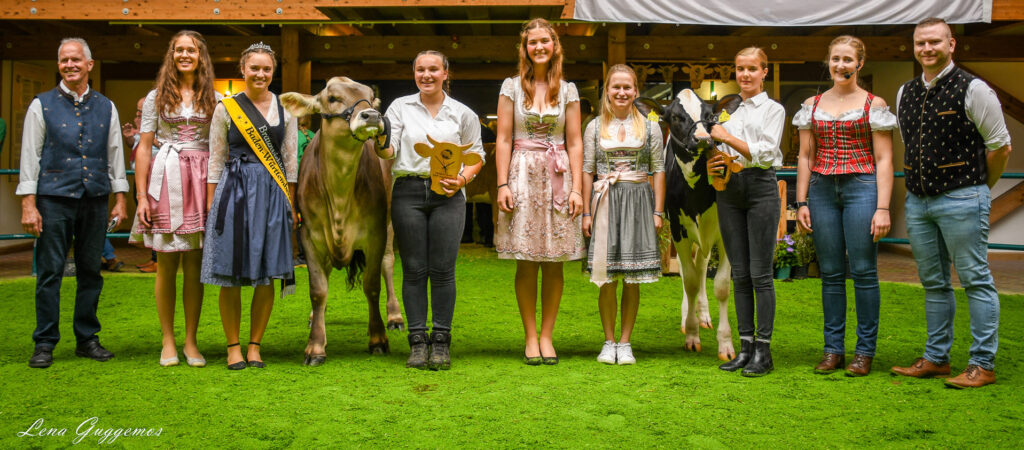 Braunviehkönigin Lisa Marie Renz vergibt Preis für die schönste Stalltafel