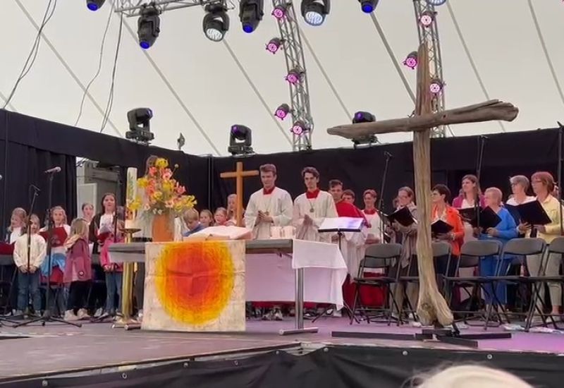 Weltoffen, wahrnehmend und wertschätzend – so präsentierte sich die Seelsorgeeinheit Bad Waldsee gemeinsam mit der evangelischen Kirchengemeinde Bad Waldsee. Auch die beiden Chöre zeigten sich wertschätzend, wahrnehmend und weltoffen. Felicia Wieland, Chorleiterin des Kirchenchores Reute, setzte sich kurzerhand ans E-Piano, um beide Chöre zu begleiten und überließ Verena Westhäuser die musikalische Leitung beider Chöre. Voller Begeisterung waren die Kinder bei jedem Stück mit dabei und man merkte, wie sich diese musikalische Begeisterung auf die Sängerinnen und Sänger des Kirchenchores übertrug. Mit „Schau auf die Welt“ wurden die Gottesdienstbesucher zu Beginn gleich aufgefordert, sich umzuschauen, die blühende Farbenpracht auf sich wirken zu lassen, was einem auf der Landesgartenschau wahrlich gut gelingt. Es folgten noch „Wäre Gesanges voll unser Mund“, „Lobe den Herrn meine Seele“, „Du gibst mir Rückenwind“ und „Möge die Straße uns zusammen führen“. Die Resonanz der Gottesdienstbesucher auf das gemeinsame Singen von Kinder- und Kirchenchor war durchweg positiv und der Wunsch nach einer Wiederholung dieser offenen und wertschätzenden Zusammenarbeit beider Chöre wurde mehrfach gewünscht. Nach dem Gottesdienst machten sich die Sängerinnen und Sänger auf, das Gelände der Landesgartenschau zu erkunden und erfreuten sich sowohl an der blühenden Farbenpracht als auch an den kulinarischen Angeboten. Außerdem zeigte man sich auch an der Argenbühne als Zuhörer der weiteren Gruppierungen, die an diesem Tag Bad Waldsee repräsentierten. Mit dem Zug ging es nach einem schönen und ausgefüllten Tag mit vielen schönen Eindrücken wieder zurück nach Bad Waldsee, wo der Kirchenchor den Tag bei einem gemeinsamen Abendessen ausklingen ließ.