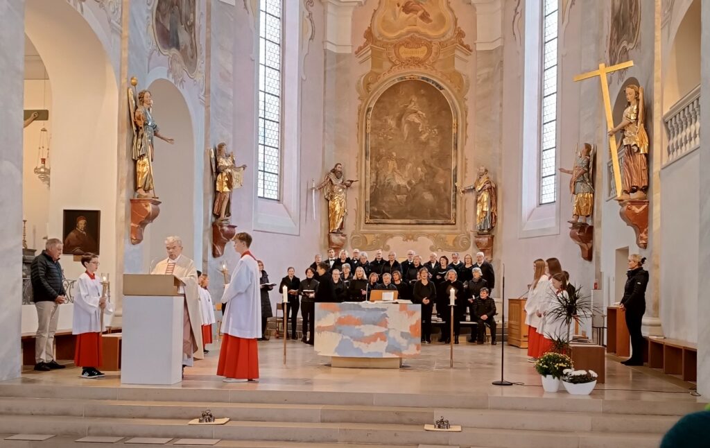 Mit feierlichem Chorgesang gestaltete der Kirchenchor St. Peter und Paul den Festgottesdienst. Unter der Leitung von Felicia Wieland und Leo Straßner an der Orgel wurden auch Lieder aus dem Gesangbuch intoniert. Besonders mit dem Vortrag „O sacrum convivium“ und dem „Aaronitischen Segen“ am Schluss des Gottesdienstes erzielten die etwa 30 Chorsängerinnen und Chorsänger großen Beifall der Gemeinde.
