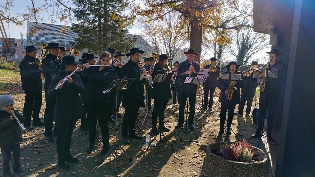 Jetzt wurden die Namen der im vergangenen Jahr verstorbenen Gemeindemitglieder vorgetragen, es waren jeweils zwölf Frauen und Männer sowie fünf Schwestern von Kloster Reute. Die Gedenkfeier wurde von der Musikkapelle Reute-Gaisbeuren mit Lieder und Chorälen umrahmt. Zum Abschluss ging Pater Hubert durch die Reihen des Friedhofs und besprengte die Gräber mit Weihwasser.