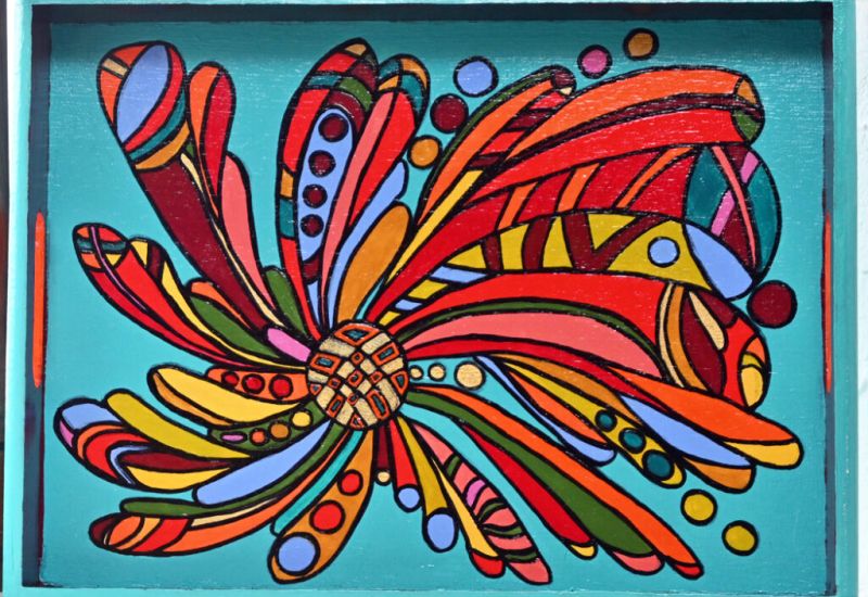 In der Ausstellung gibt es zwei- und auch dreidimensionale Bilder zu sehen. Ihre bunten Malereien findet man aber auch in der Serie „homepART“ wieder. Das sind bunt bemalte Schalen, Teller und Tabletts, die für den häuslichen Gebrauch geschaffen wurden.