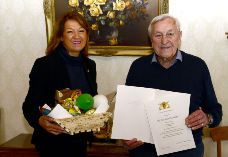 Vergangene Woche feierte er seinen 90. Geburtstag, dazu gratulierte Bürgermeisterin Monika Ludy dem Jubilar von ganzem Herzen und stattete ihm einen Besuch ab. In diesem Rahmen überreichte sie ihm ein Glückwunschschreiben von Ministerpräsident Winfried Kretschmann sowie eine Geburtstagskarte der Stadt, gepaart mit einem Geschenkkorb, der mit Leckereien aus der Region gefüllt war.