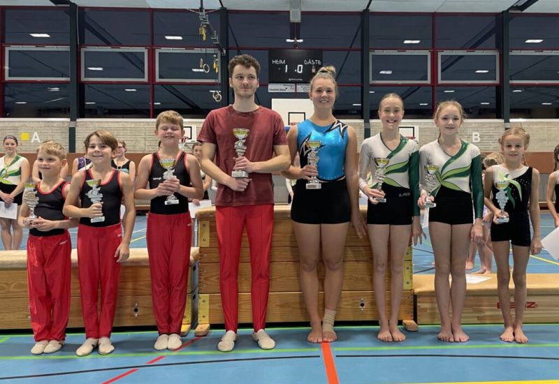 Bei den aktiven Damen triumphierte Lisa-Marie Heiss mit den besten Übungen am Reck, Balken und Boden und sicherte sich zum vierten Mal den Titel Vereinsmeisterin. Ihre Schwester Lara-Sophie Heiss folgte mit präzisen Übungen an allen Geräten auf Rang 2, während Rebecca Müller mit der höchsten Sprungwertung den 3. Platz belegte.