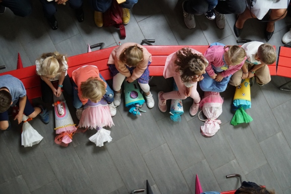 Während für die Zweit- bis ZehntklässlerInnen schon seit Montag der Schul- und Unterrichtsalltag an der Tagesordnung ist, hatten unsere Kleinsten noch ein bisschen länger Zeit. Zeit, um sich zu freuen, gespannt zu sein und sicherlich auch Zeit, um die Aufregung etwas abflachen zu lassen. Begrüßt wurden unsere drei neuen 1. Klassen am Freitag beziehungsweise Samstag mit einem bunten und abwechslungsreichen Programm: So gab es nicht nur einleitende Worte von Rektor Herr Dorn, ein tierisches Theater der ViertklässlerInnen rund um den Löwen Eugen, Musik und Gesang, einen andächtigen Gottesdienst mit unserem Pfarrer Herr Bucher, Turnbeutel als Geschenke von Klasse 8, sondern auch ein erstes Kennenlernen mit Eugen, dem zukünftigen Klassenzimmer und den Klassenlehrkräften Frau Huonker, Herr Brändle und Frau Allgäuer.