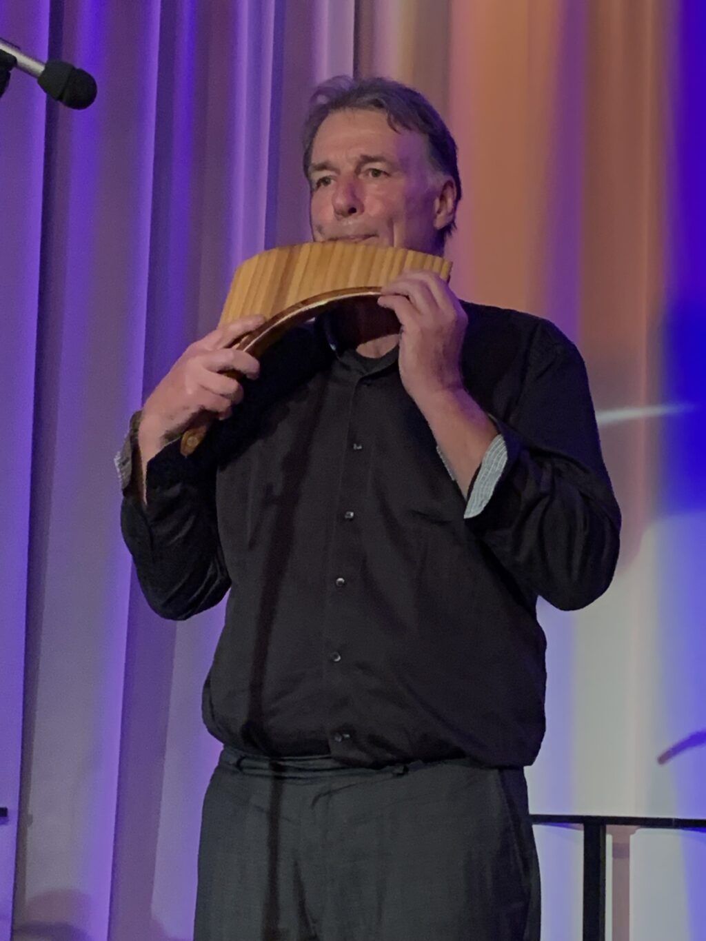 Zweimal räumte der Chor für den Panflötensolisten Ede Butscher die Bühne. Butscher spielte den von James Last bekannten Instrumentaltitel „Der einsame Hirte“, wie ihn einst auch der rumänische Panflötenvirtuose Gheorghe Zanfir populär machte. Das Stück fordert höchste Konzentration und enthält schwindelerregende Läufe bis in fast unerreichbar hohe Töne. Man ist dabei an den „Alten Dessauer“ erinnert, den nur wenige Trompeter perfekt beherrschen. In Teil zwei des Konzerts demonstrierte Butscher sein Können auch auf der Basspanflöte mit dem traditionell-rumänischen Tanz- oder Liebeslied „Hora“ und mit „El Condor pasa“, das in Lateinamerika Symbol für den Wunsch nach Freiheit wurde.