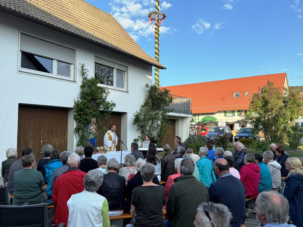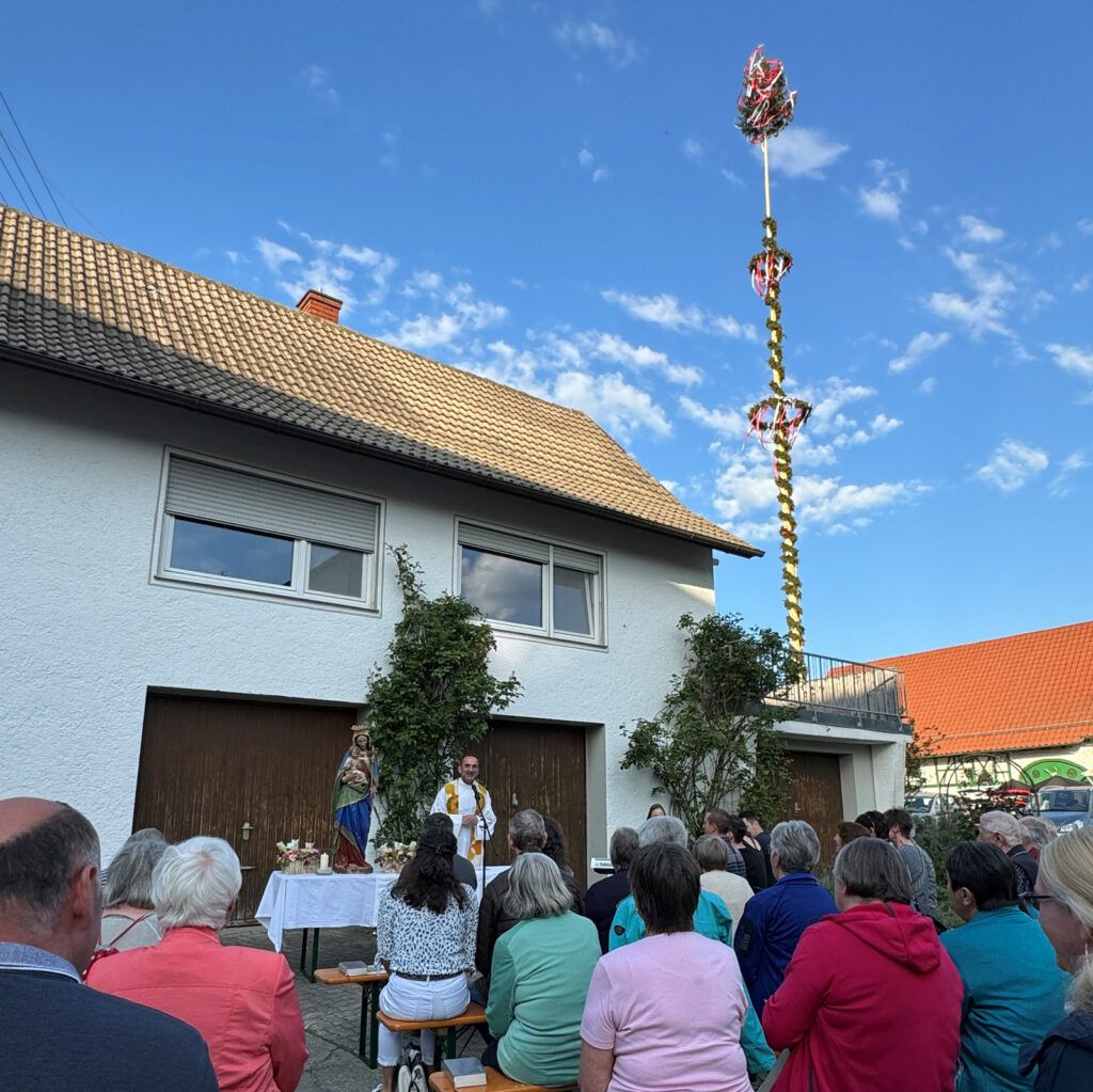Osterhofen – Am 1. Mai fand in Osterhofen die erste Maiandacht der Kirchengemeinde Haisterkirch – unter freiem Himmel – direkt neben dem prachtvollen Osterhofener Maibaum statt.