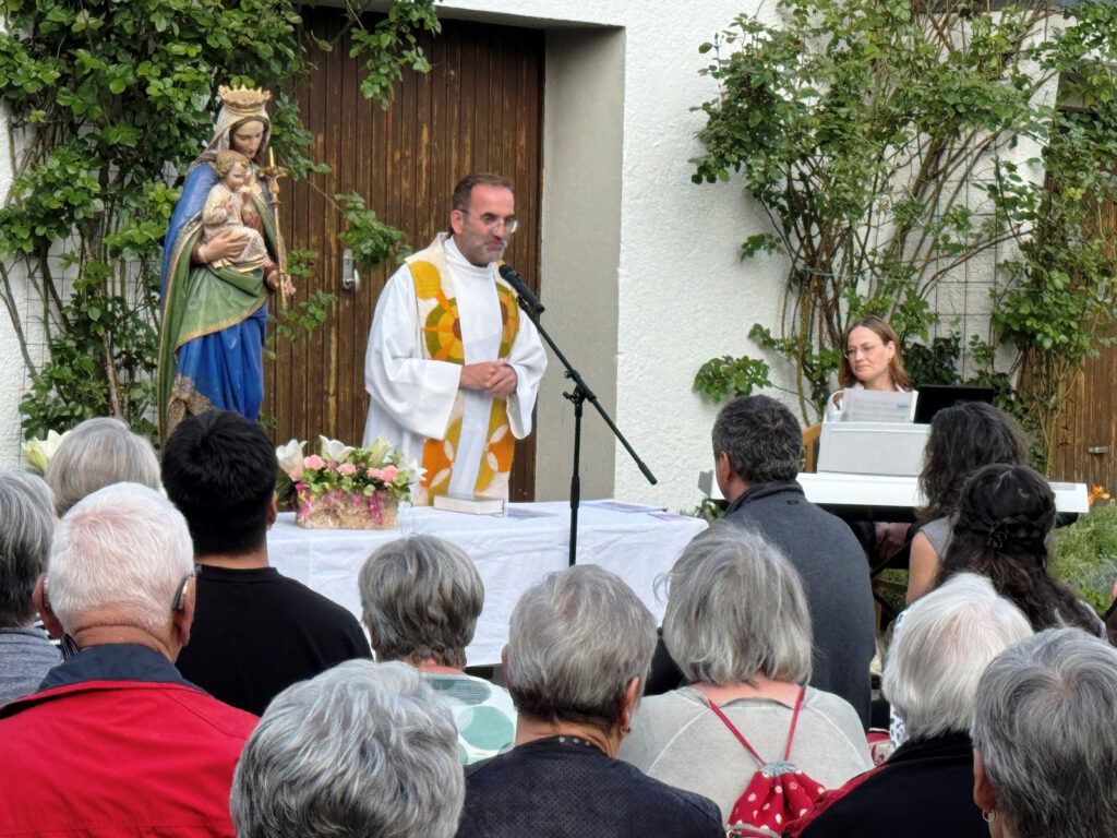 Pfarrer Stefan Werner verdeutlichte mit Bildern und Worten, was die Aussage bedeutet „Ich habe Dich bei Deinem Namen gerufen“ und wie vielfältig Namensbezüge zu Maria als Fürsprecherin bei Gott weltweit geworden sind. Einige Begriffe seien hier aufgeführt: Gottesgebärerin, Meerstern, Himmelskönigin, Gottesmutter, Magd des Herrn, Mutter des Erlösers, Schmerzensmutter, Mutter der Barmherzigkeit, Trösterin der Betrübten …