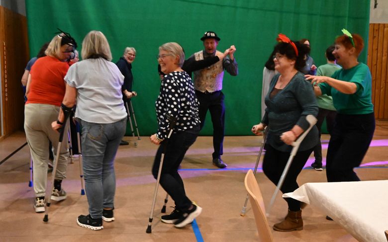 Höhepunkt des vergnüglichen Fasnetseinstiegs im Maxibad war sicherlich die spontane Krücken-Polonaise, die ein Dutzend Patientinnen aufs Parkett legten.