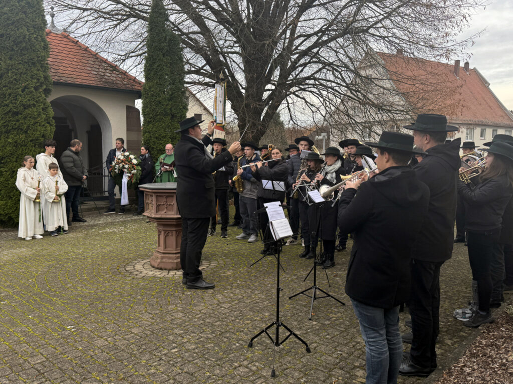 Die Musikantinnen und Musikanten, die unter der musikalischen Leitung von Klaus Wachter in guter Besetzung für die würdige, musikalische Umrahmung der Gedenkfeier Sorge getragen hatten, verdienten besonderes Lob. Denn am Abend zuvor war die Musikerschar ja schließlich voll gefordert bei ihrem großartig gelungenen Jahreskonzert in der hiesigen Gemeindehalle (ein Bericht darüber folgt).