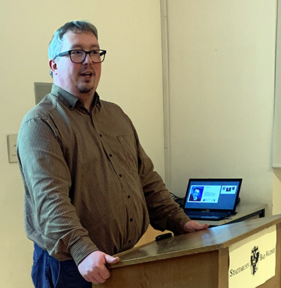 Der Historiker Dr. Christopher Dowe (hier bei seinem Vortrag in Bad Waldsee) arbeitet im Haus der Geschichte Baden-Württemberg in Stuttgart.