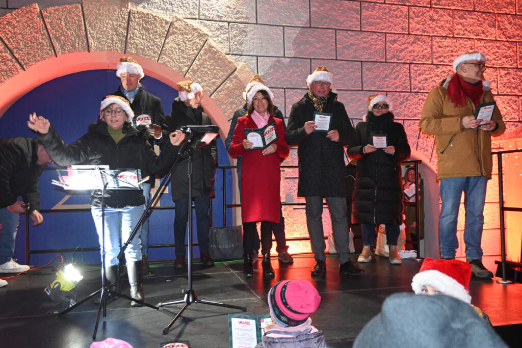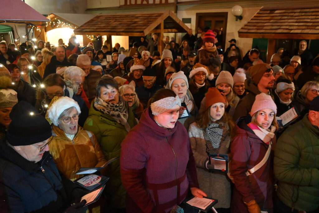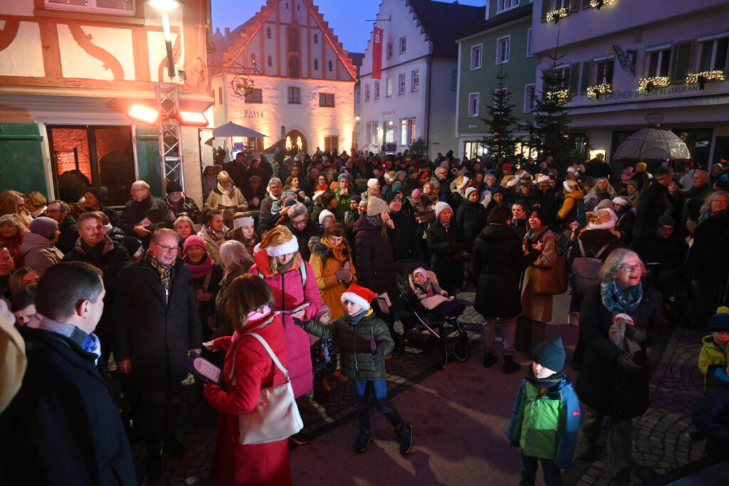 Auch ungeprobt sangen die mehr als 1000 Bad Waldseer Stimmen gut zusammen. Es klang mal weihnachtlich-emotional, mal schwungvoll über den Rathausplatz und in die angrenzende Ravensburger Straße hinein.