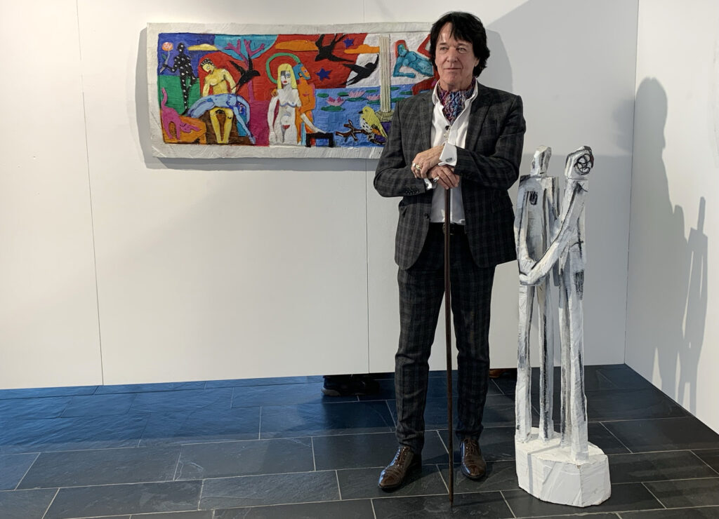 Axel Otterbach (Bild) erinnerte in seiner Begrüßung an den Skulpturensommer 1989 in Bad Waldsee. Unter den damals geladenen Bildhauern war auch Terence Carr mit seiner farbigen Skulptur „Someone“. Dies war die Zeit, als Skulpturen aus unterschiedlichsten Materialien wieder mit Farbe Aufwertung erhielten. Selbst zunächst mit Kettensäge entstandene Skulpturen Carrs werden durch aufwändige Bemalung filigran und detailreich, so Otterbach. In seinen Arbeiten überschreite der Künstler Grenzen zwischen Figuration und Abstraktion oder eben auch zwischen Skulptur und Malerei.