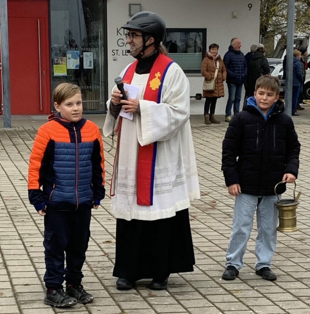 Gaisbeuren – Menschsein machte Pfarrer Stefan Werner zum Thema der Eucharistiefeier am 9. November, an dem heuer der traditionelle Gaisbeurer Leonhardsritt stattfand. Am 9. November erinnern wir uns auch an die dunkelste Seite deutscher Geschichte, als 1938 vom nationalsozialistischen Regime zu grausamen Pogromen gegen die jüdischen Mitbürger aufgerufen wurde. Am 9. November 2025 wurden den Teilnehmer am Gaisbeurer Leinhardsritt der Heilige Leonhard vor Augen gestellt, dem die Gleichheit allen Lebens in gegenseitigem Respekt ein Herzensanliegen war. Dieses Anliegen haben uns auch Holocaust-Überlebende wie Marcel Reif oder Margot Friedländer unauslöschlich ins Gewissen gerufen.