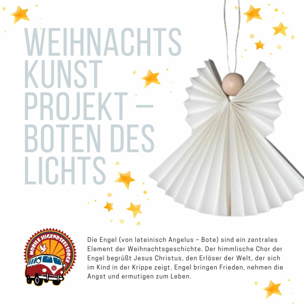 Die Ministranten der Kirchengemeinde haben die Idee und Konzeption der Mobilen Jugendseelsorge in stundenlanger Faltarbeit umgesetzt und die Engelschar mit dünnen Schnüren in den Kirchenraum aufsteigen lassen. Weitere Engel kamen von den Kirchenbesuchern dazu, auch in St. Johannes Baptist Haisterkirch werden sie zu sehen sein. Die Jugendseelsorge wollte aber nicht nur eine Idee für schöne Dekorationen liefern, sondern lädt auch zur persönlichen Begegnung mit den Boten des Lichts ein. Christine Tschönhens und David Bösl gestalteten und texteten sechs verschiedene Engelskarten, die das kreative Projekt begleiten.
