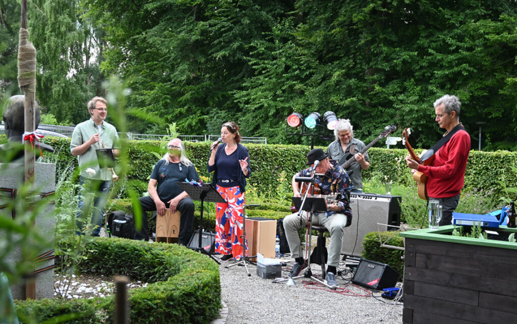 Die Feier wurde mit einer herzlichen Begrüßung von Dr. Anamarija Matt eröffnet, die die Gäste willkommen hieß und das Gelingen des Abends wünschte. Jutta Auer erzählte im Anschluss vom Kneippverein um dem Kräutergarten. Im Anschluss sorgte die Band „Swing & Co“ für eine lebendige Atmosphäre. Mit schwungvollen Melodien und sogar tanzbarem Swing im Kräutergarten machten die Musiker ihrem Namen alle Ehre und luden die Gäste ein, das Tanzbein zu schwingen – ein Highlight des Abends. Vor allem Anita Umbrecht brillierte einmal mehr mit ihrer Stimme.