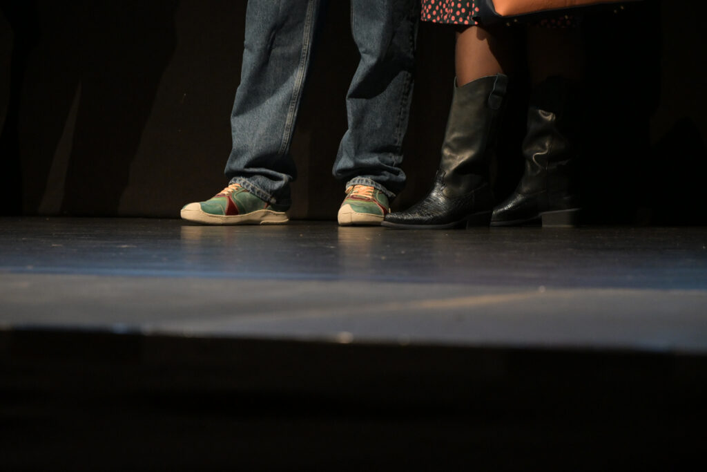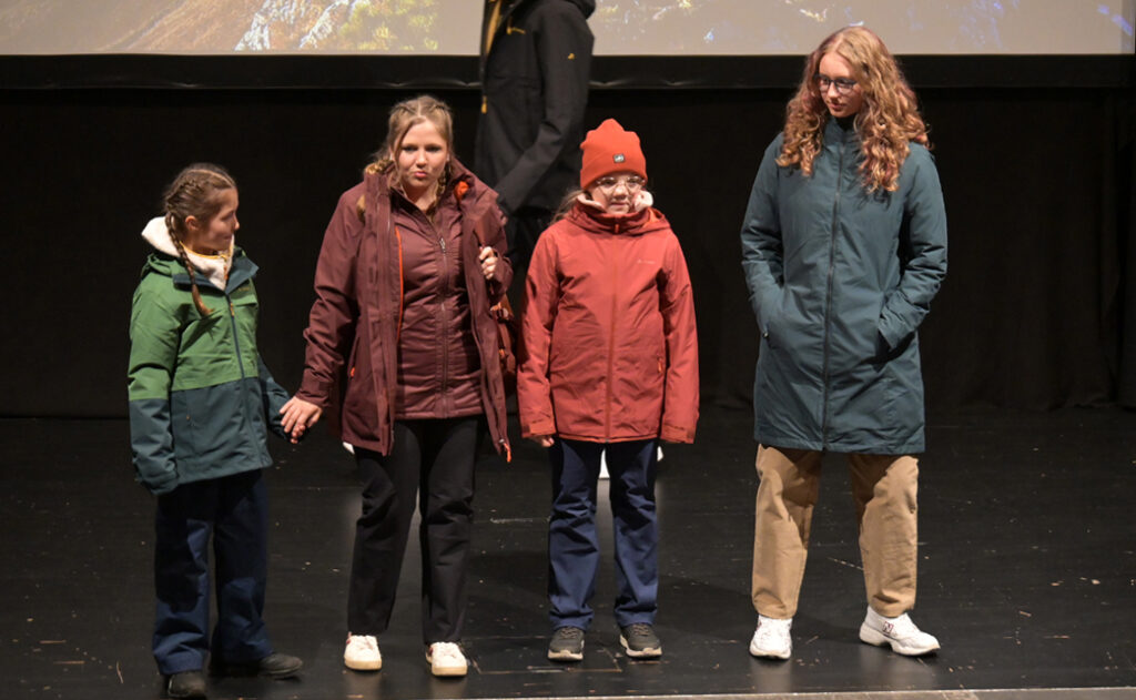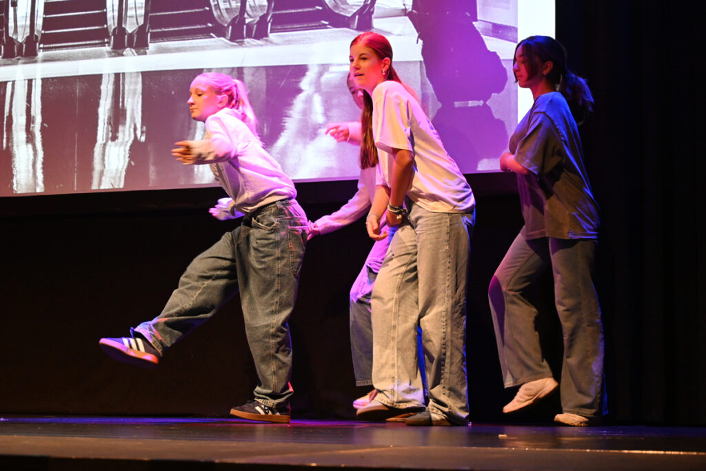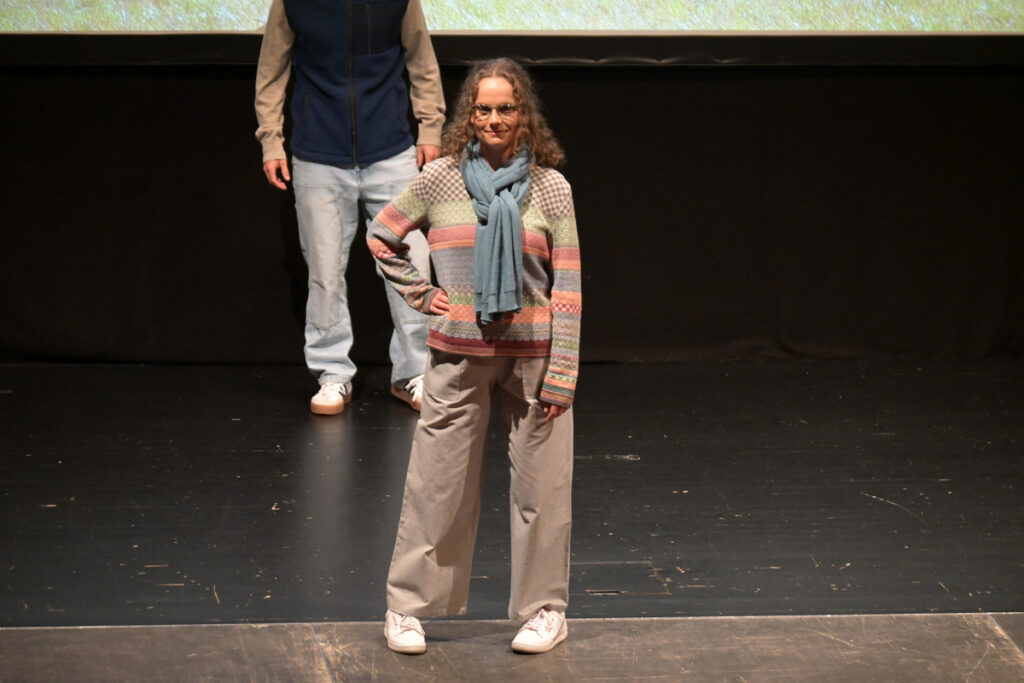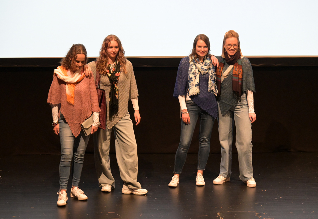 Showmäßig schritten die Models die Treppe von der Galerie herunter, gingen vor zur Bühne, drehten ihre Runden und verließen nach Präsentation der Stücke den Saal auf dem roten Teppich im Mittelgang. Durch die Show führten Marion Bohner und Sandra Weber – charmant, schwungvoll und mit viel Herz für faire Mode. Den Auftakt machten die Hip-Hop-Jugendlichen der Tanzschule Gleis Eins, die das Publikum sofort auf Betriebstemperatur brachten.