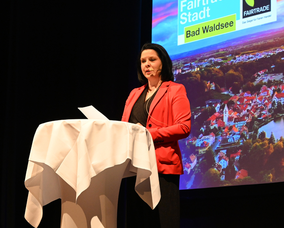 „Jede Entscheidung an der Kasse ist eine Stimme für Gerechtigkeit.“ Ingrid Wölflingseder, Vorsitzende des Unternehmerforums Bad Waldsee, bei ihrer Ansprache.