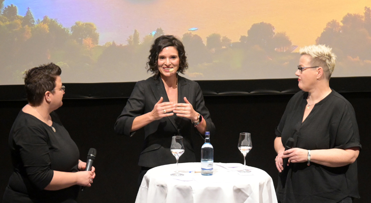 Sandra Weber (links) und Marion Bohner (rechts) im Gespräch mit Sarah-Jane Henne.