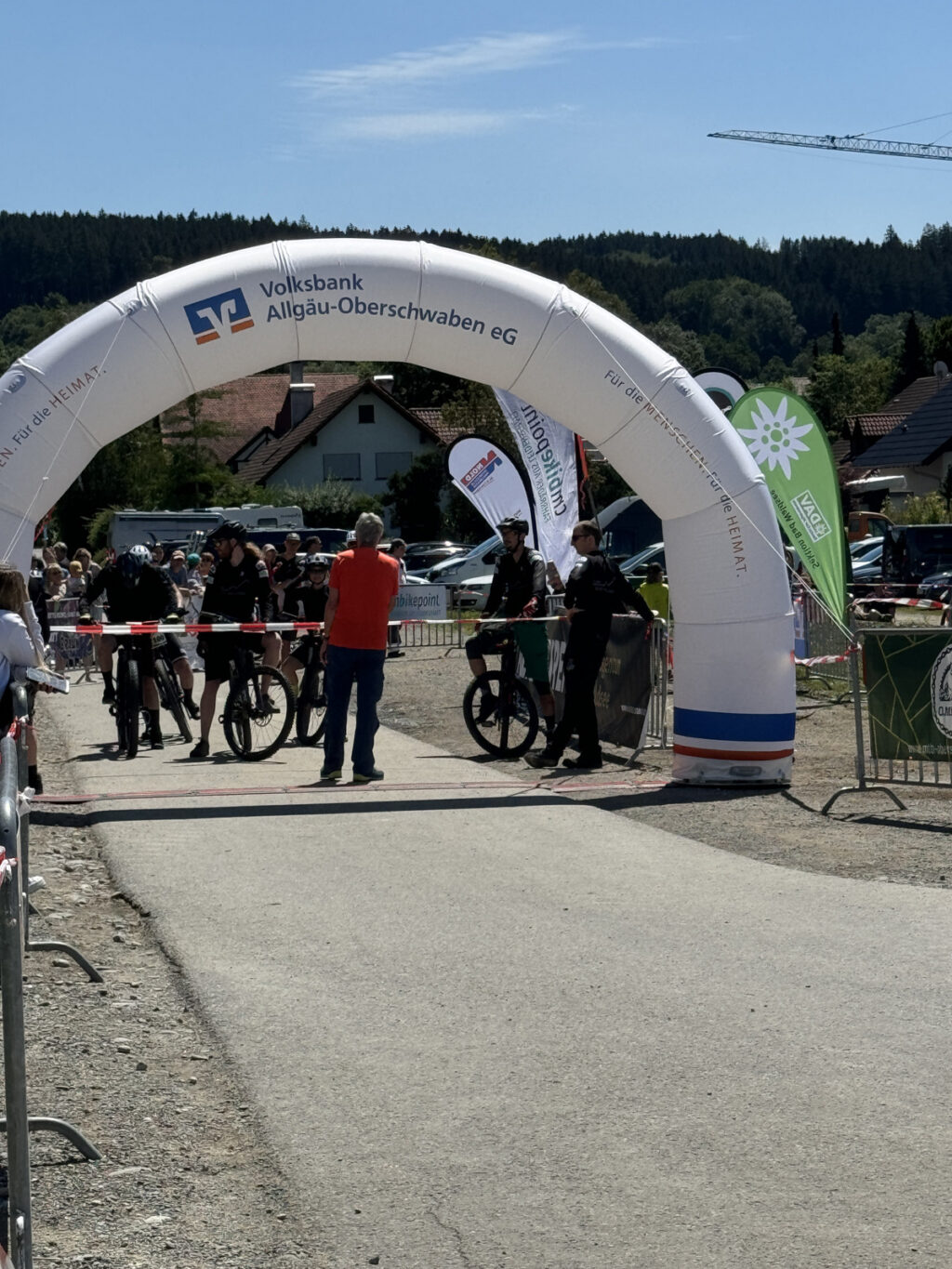 Rund um Start und Ziel waren etliche Werbetafeln aufgestellt, die aufzeigten, welche Unternehmen (Sponsoren) das Ganze unterstützen. Hauptsponsor ist die Volksbank Allgäu-Oberschwaben. Extra zum Start des Hauptrennens um 12.00 Uhr war Regionalmarktdirektor Anton Sproll von der VBAO gekommen. Er konnte sich davon überzeugen, dass bei dem sonnigen Wetter wiederum Cross-Country-Begeisterte aus ganz Oberschwaben und auch weiter entfernten Regionen gekommen waren.