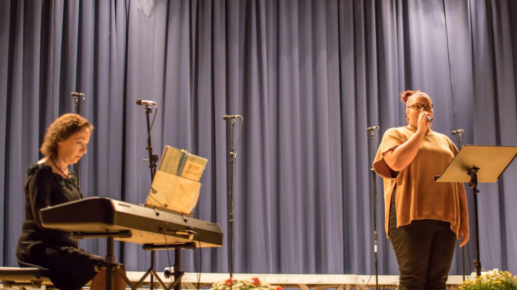 Nach einer kurzen Pause, während der sich die Zuhörer am Häppchen-Büffet stärken konnten, ging es mit einer Überraschung weiter. Der im Programm angekündigte MGV Steinhausen-Muttensweiler hatte krankheitsbedingt zwei Tage vorher seine Teilnahme absagen müssen. Umso mehr begeisterte die junge, talentierte Lia Lämmle mit Ihrer Gesangslehrerin Elena Becker-Schramm am Klavier von der Jugendmusikschule Bad Waldsee, die kurzfristig eingesprungen ist. Gefühlvoll, stimmgewaltig in den tiefen Tönen und hell und klar in den höheren Tonlagen brachte sie „You are the reason“, „Amol seng wir uns wieder“ und „Make you feel my love“ zu Gehör. Eine großartige Leistung von Lia Lämmle, bei der von Nervosität nichts zu spüren war. Einmal mehr stellte Elena Becker-Schramm unter Beweis, dass sie ihre Schülerinnen und Schüler hervorragend auf die Bühne vorbereitet.