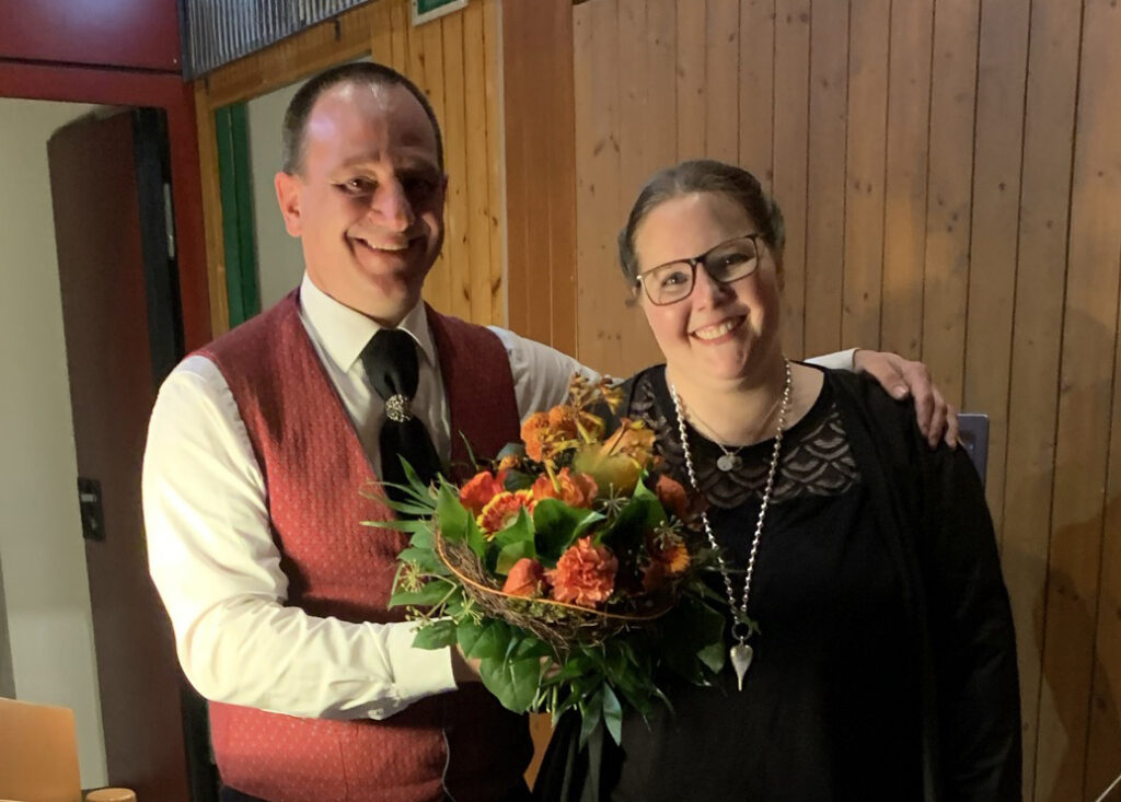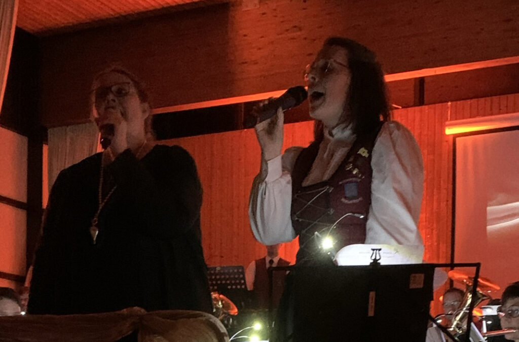 Und weil es gar so schön war, gab es noch einen zusätzlichen Schlusspunkt: Die Dirigentin und ihre Schwester Franziska Walser sangen im Duett „Kimm guat hoam’, instrumental begleitet vom gesamten Ensemble und dazu noch mit stimmlicher Unterstützung aller Männer im Ensemble!