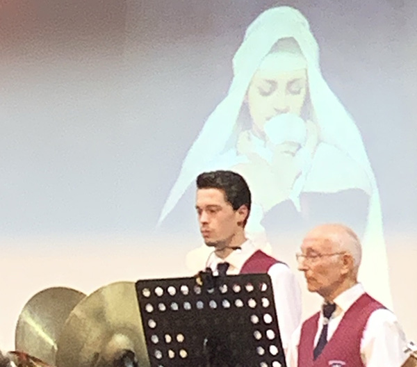 Zum nächsten Titel „Annie’s Dream“ empfahl die Moderatorin die Augen zu schließen. Wer ist denn eigentlich diese Annie, die ihren Traum vom eigenen Lebensweg mühsam erkämpfen muss, um ihre Talente anderen zu beweisen, fragte die Moderatorin. Insbesondere Trompeten und Flügelhorn wie dann auch die Holzregister zeigten den schwierigen Weg der jungen Annie in einer perfekten musikalischen Interpretation. Dazu passend war das Bild einer offensichtlich triumphierenden Frau auf einer Felsspitze zu sehen.