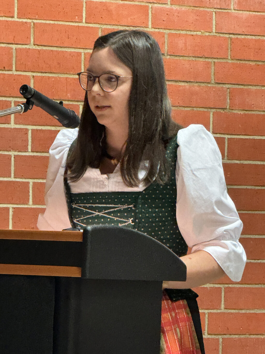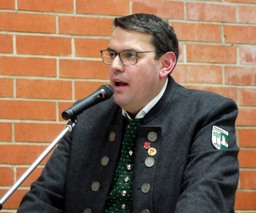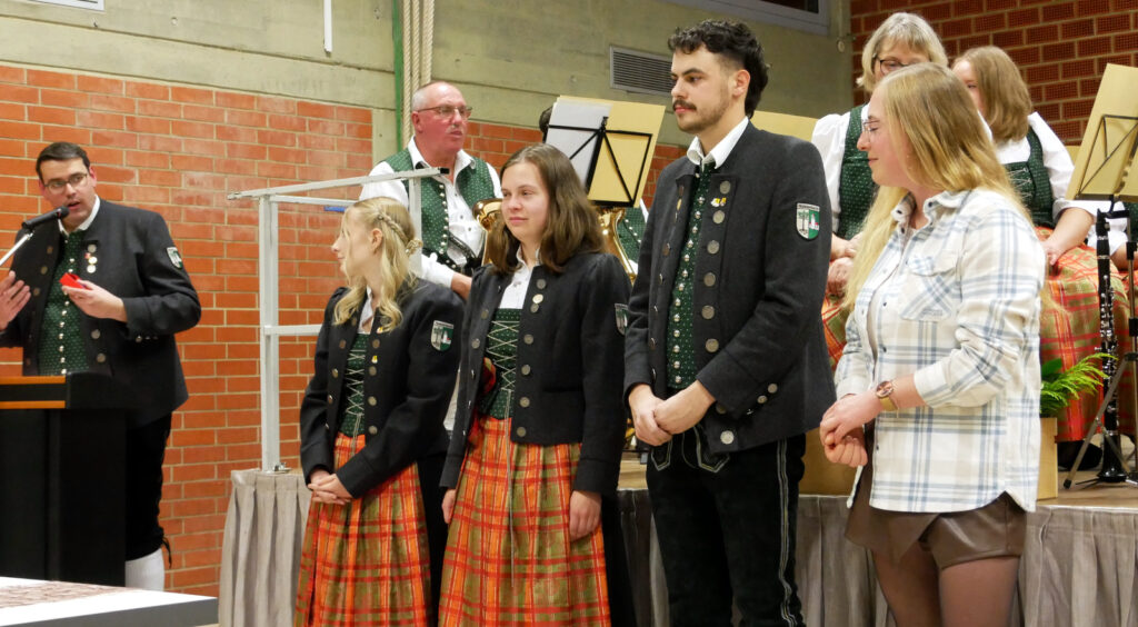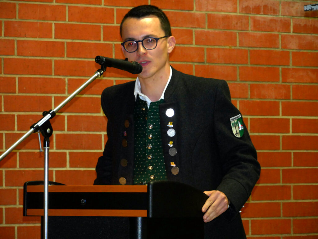 Mit Dankesworten, gerichtet ans Service-Team in der Halle und in der Küche, an die fleißigen Musikerinnen und Musiker und an das so viel Applaus spendende Publikum, leitete der Vorstandsvorsitzende Daniel Maucher über zum inoffiziellen Teil des Abends. Bei der Übergabe von Dankespräsenten an Klaus Wachter und an Verena Maucher schwoll der Applaus nochmals an, übrigens auch beim besonderen Dankeschön für den Gastmusiker Fabian Kiekopf (E-Bass) und für Schriftführerin Leonie Waibel.
