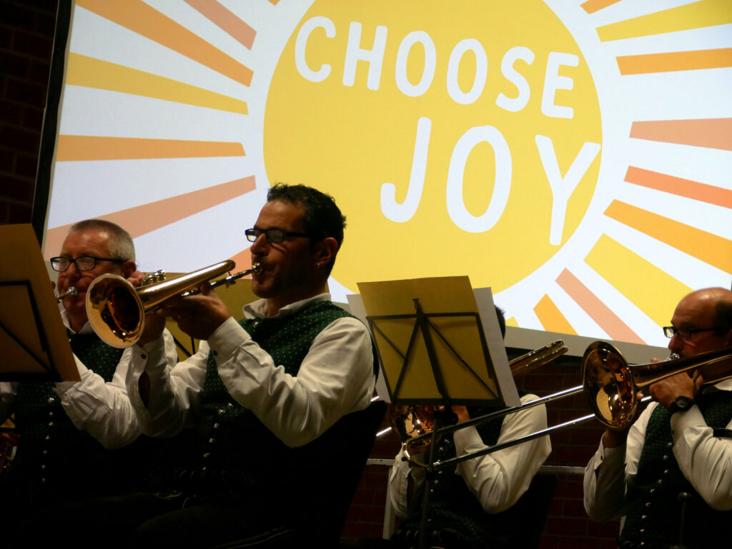 Die kurzweilige Moderation und Ansage der einzelnen Musikstücke hatte traditionsgemäß Verena Maucher übernommen. Freudvoll war der Einstieg ins Konzert mit fesselnden Rhythmen und energischen Melodien des Werks „Choose Joy“ (Randall D. Stadridge) mit der Erinnerung an Beethovens Ode an die Freude. Mit dem dreisätzigen Stück „Vosgian Pictures“ (Jacob de Haan) wurde die malerische Landschaft der Vogesen lebendig, lyrisch, zugleich majestätisch, wohlklingend beschrieben.