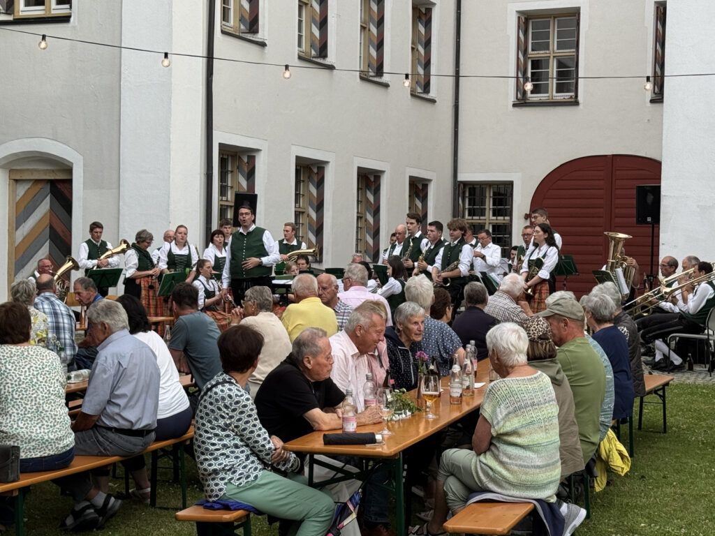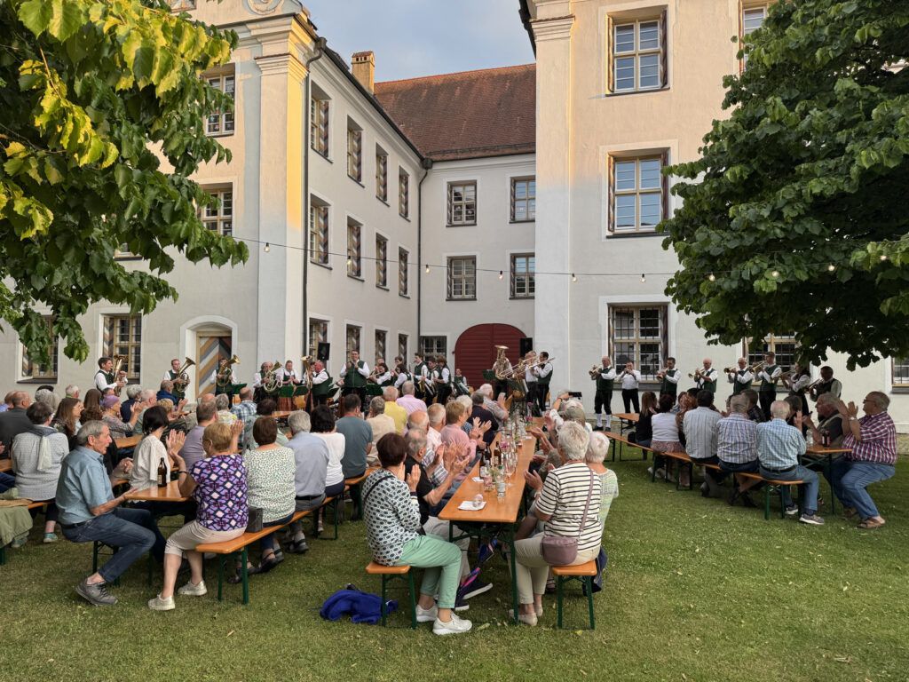Alles passte an diesem heißen, sonnigen Abend. Das Areal des Klosterhofs ist geradezu ideal für solch eine Veranstaltung, denn die Lindenbäume auf der Rasenfläche zwischen den barocken Giebelseiten des Klosterhofs und der Zehntscheuer spendeten den höchst erwünschten Schatten. Gekommen waren nicht nur zahlreich die Einheimischen, sondern auch viele Gäste aus dem Nahbereich.
