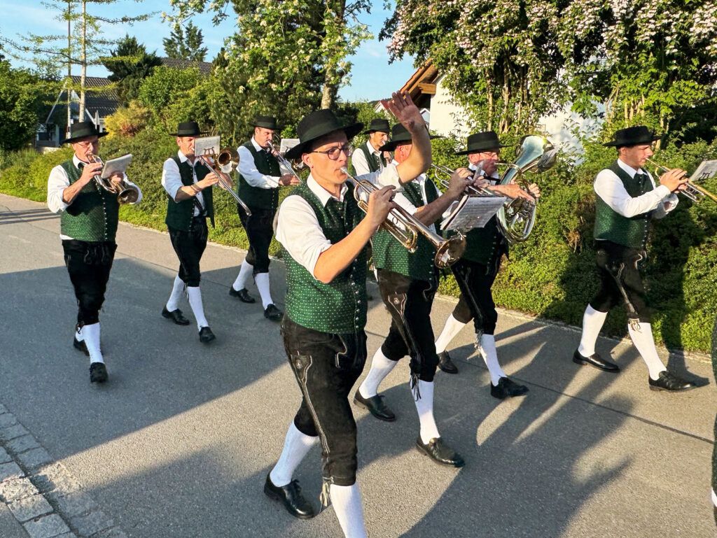Haisterkirch – Am Abend des Muttertags (12. Mai ) lockten blasmusikalische Klänge so manche Einwohner in der Ortschaftsmitte von Haisterkirch aus ihren Wohnungen und die staunten nicht schlecht, als da die Haisterkircher Musikkapelle in großer Besetzung und schmucker Tracht vorbeimarschierte. Mit dem Muttertag hatte dies wohl nichts zu tun, denn dies wäre ja eher morgens erfolgt.