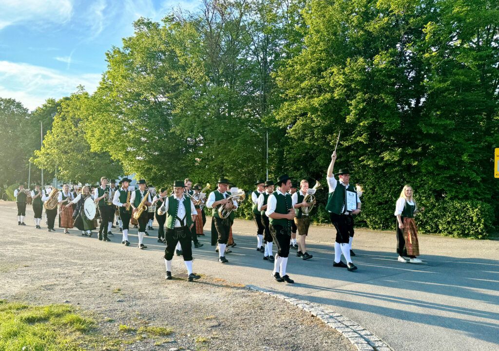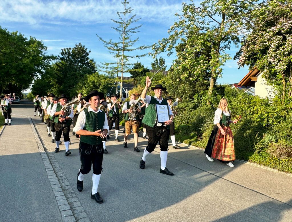Spontan entschlossen sich die mit der Supernote belohnten Musizierenden zusammen mit ihrem musikalischen Leiter Klaus Wachter, die Freude über dieses Ergebnis auch öffentlich mit viel schmissigen Marschmusikklängen kundzutun. Nach der gemeinsamen Rückkunft wurde bei der Gemeindehalle gestartet. Von dort ging es zum Haus der glücklichen Ortsvorsteherin Rosa Eisele, die zusammen mit den Eltern von Klaus Wachter das Ergebnis feierte. Ein Stelldichein gab es dann auch in der Ortsmitte bei Klosterhof und Kirche und danach ging es zurück im Bogen durch das Unterdorf. Gefeiert wurde dann noch in kleineren und größeren Runden.